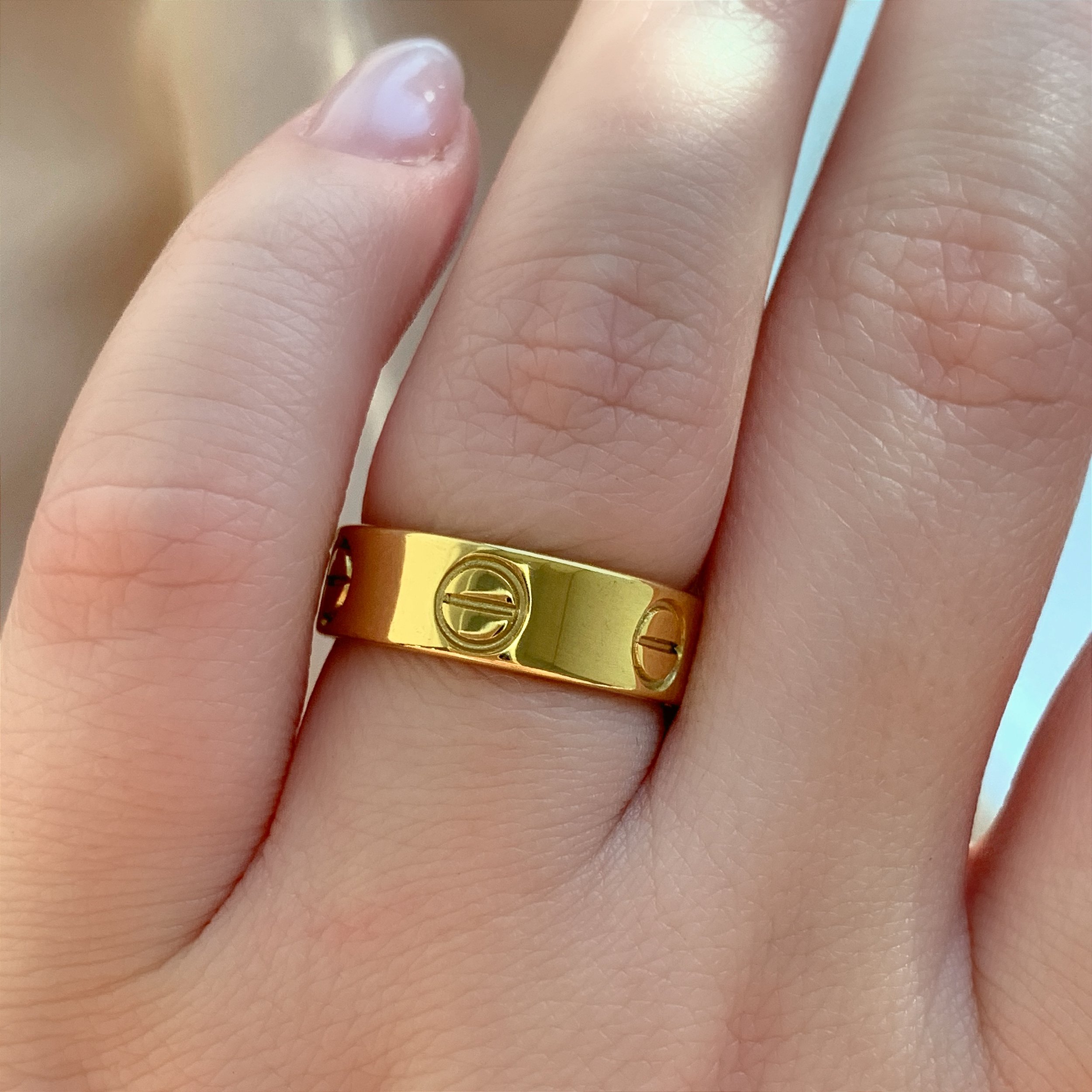 ANEL ALIANÇA GROSSA DESENHADA DOURADO AÇO 316L⭐️