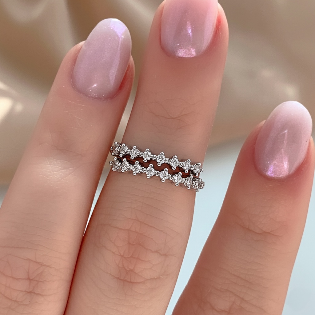 ANEL FALANGE FILEIRA DUPLA ZIRCÔNIAS PRATEADO BIJU