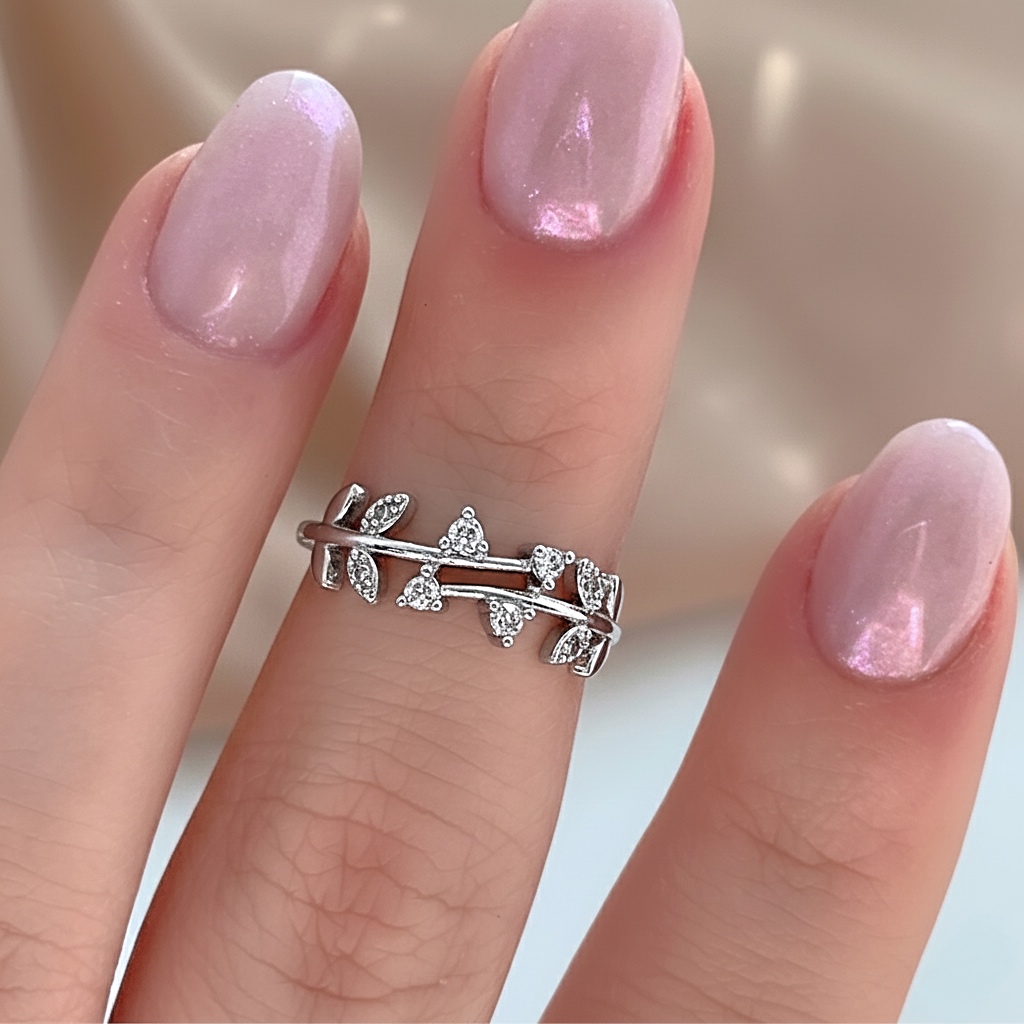 ANEL FALANGE FOLHAS ZIRCÔNIAS PRATEADO BIJU