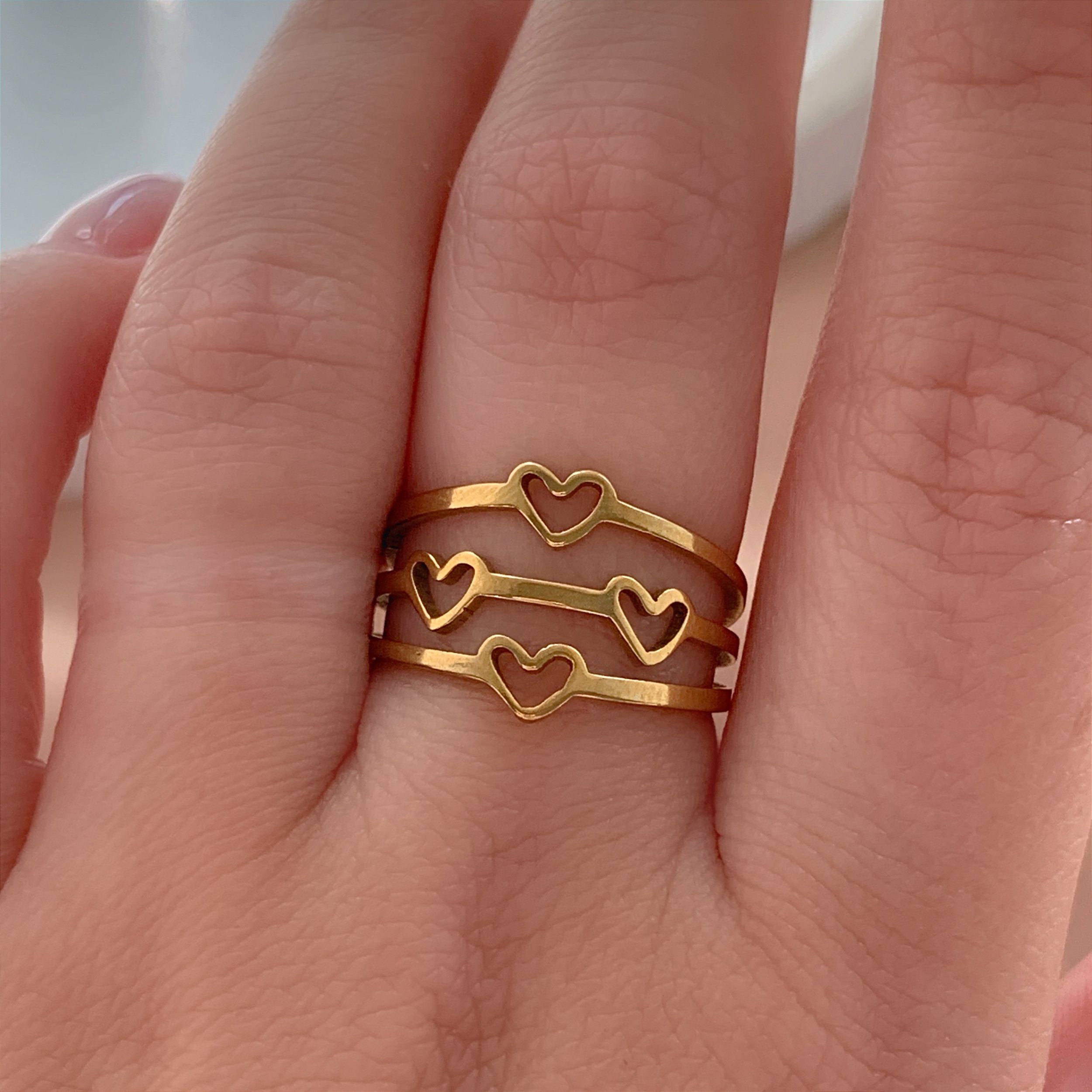 ANEL FIOS CORAÇÕES DOURADO AÇO 316L⭐️