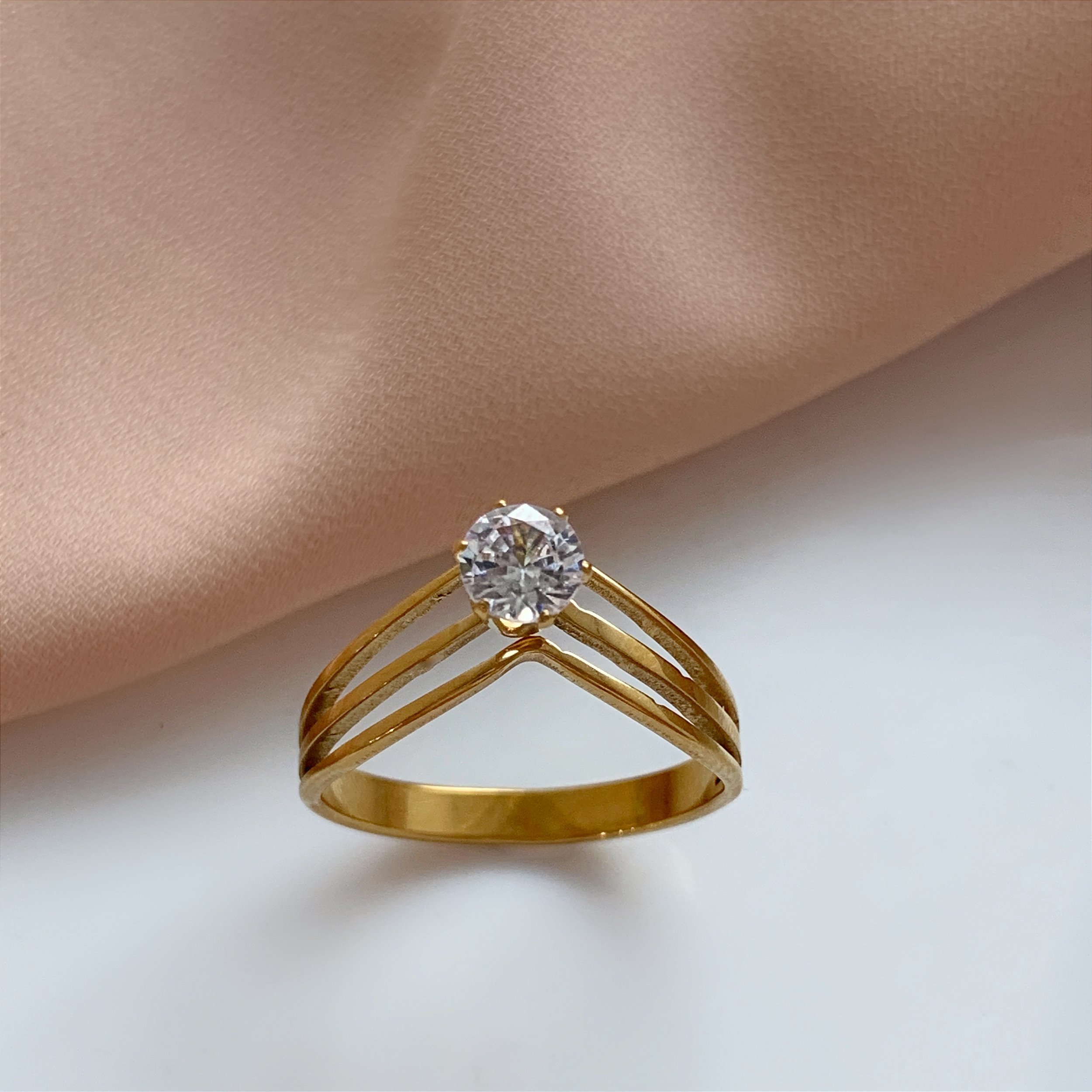 ANEL FIOS EM "V" PEDRA ZIRCÔNIA DOURADO AÇO 316L⭐️