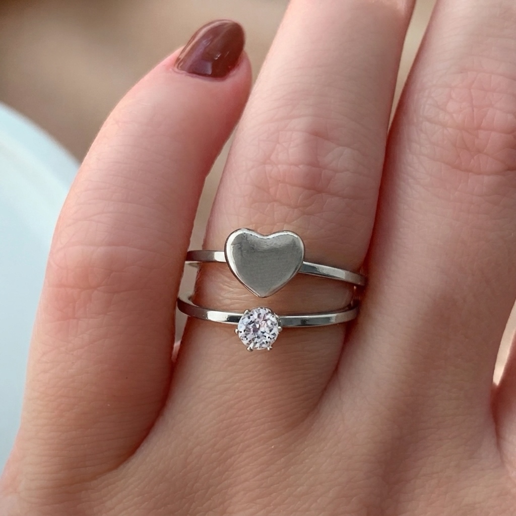 ANEL KIT SOLITÁRIO E CORAÇÃO AÇO 316L⭐️