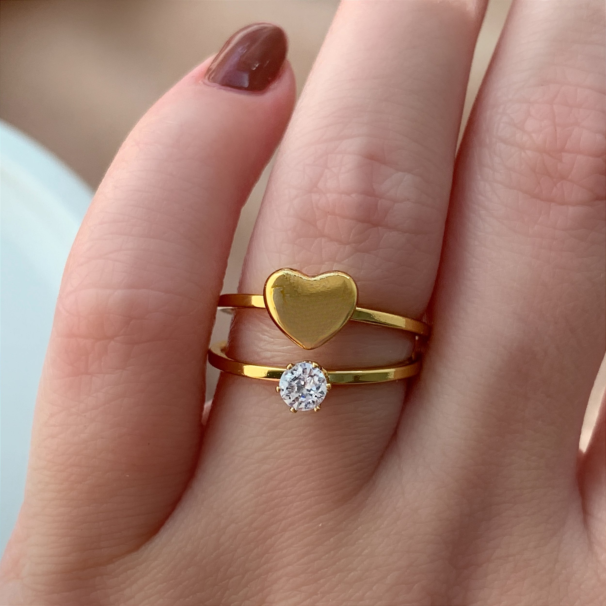 ANEL KIT SOLITÁRIO E CORAÇÃO DOURADO AÇO 316L⭐️