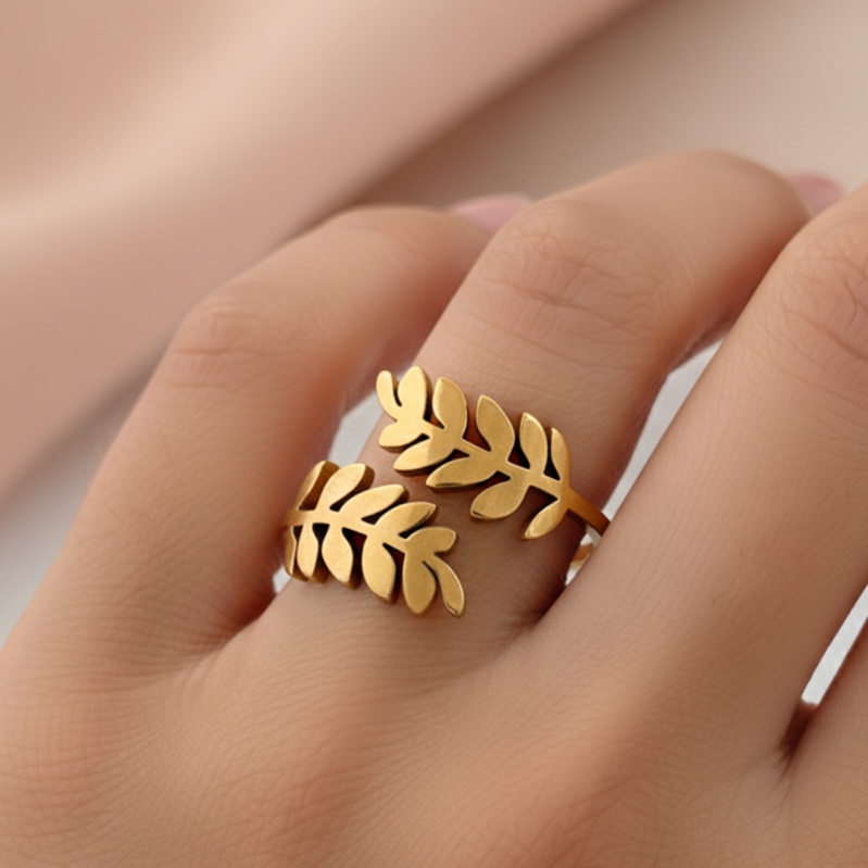 ANEL RAMOS TRANSPASSADOS DOURADO AÇO 316L⭐️