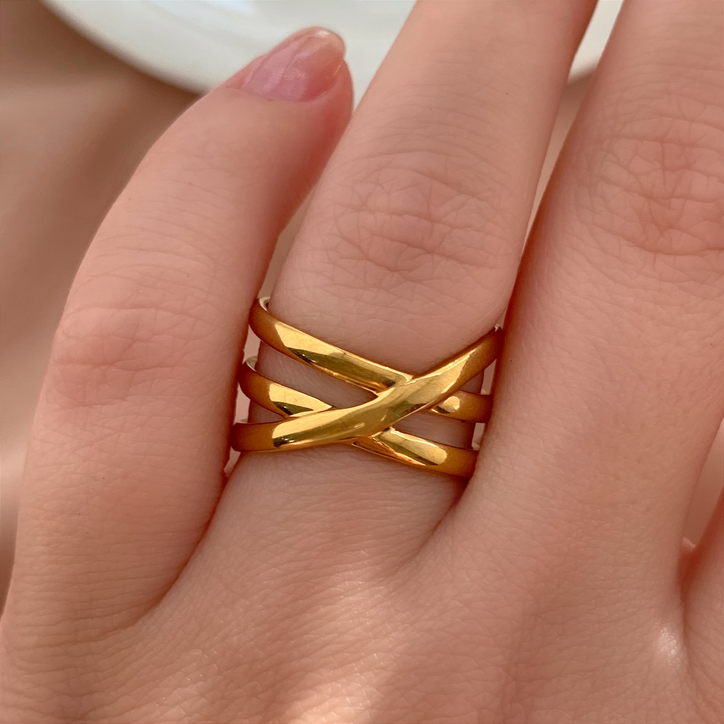 ANEL REGULÁVEL 3 FIOS ENTRELAÇADOS DOURADO AÇO 316L⭐️