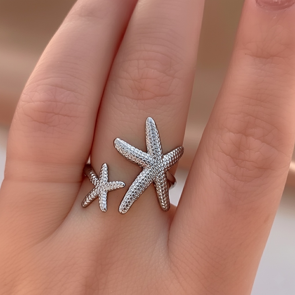 ANEL REGULÁVEL ESTRELAS DO MAR TEXTURIZADAS AÇO 316L⭐️
