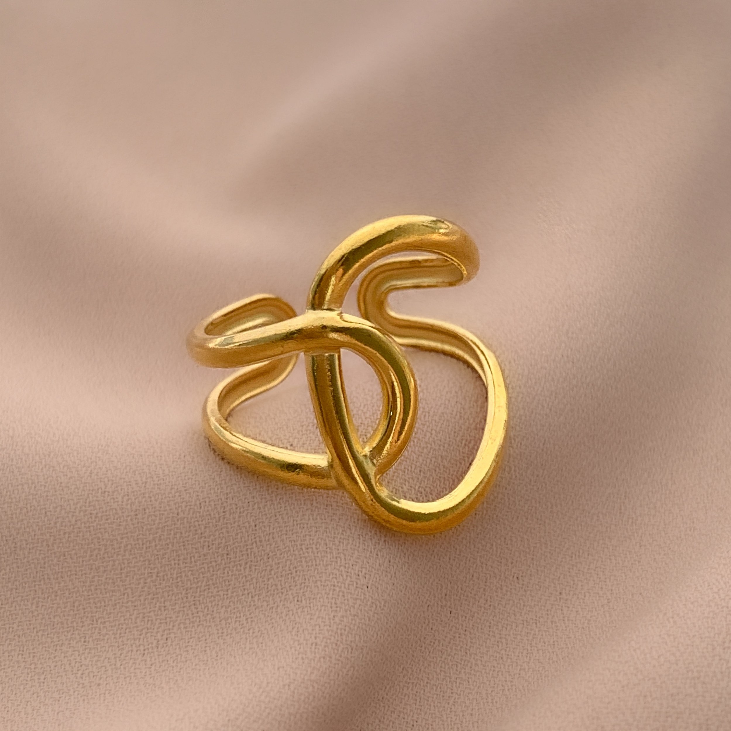 ANEL REGULÁVEL FIOS ENTRELAÇADOS BOLEADOS DOURADO AÇO 316L⭐️