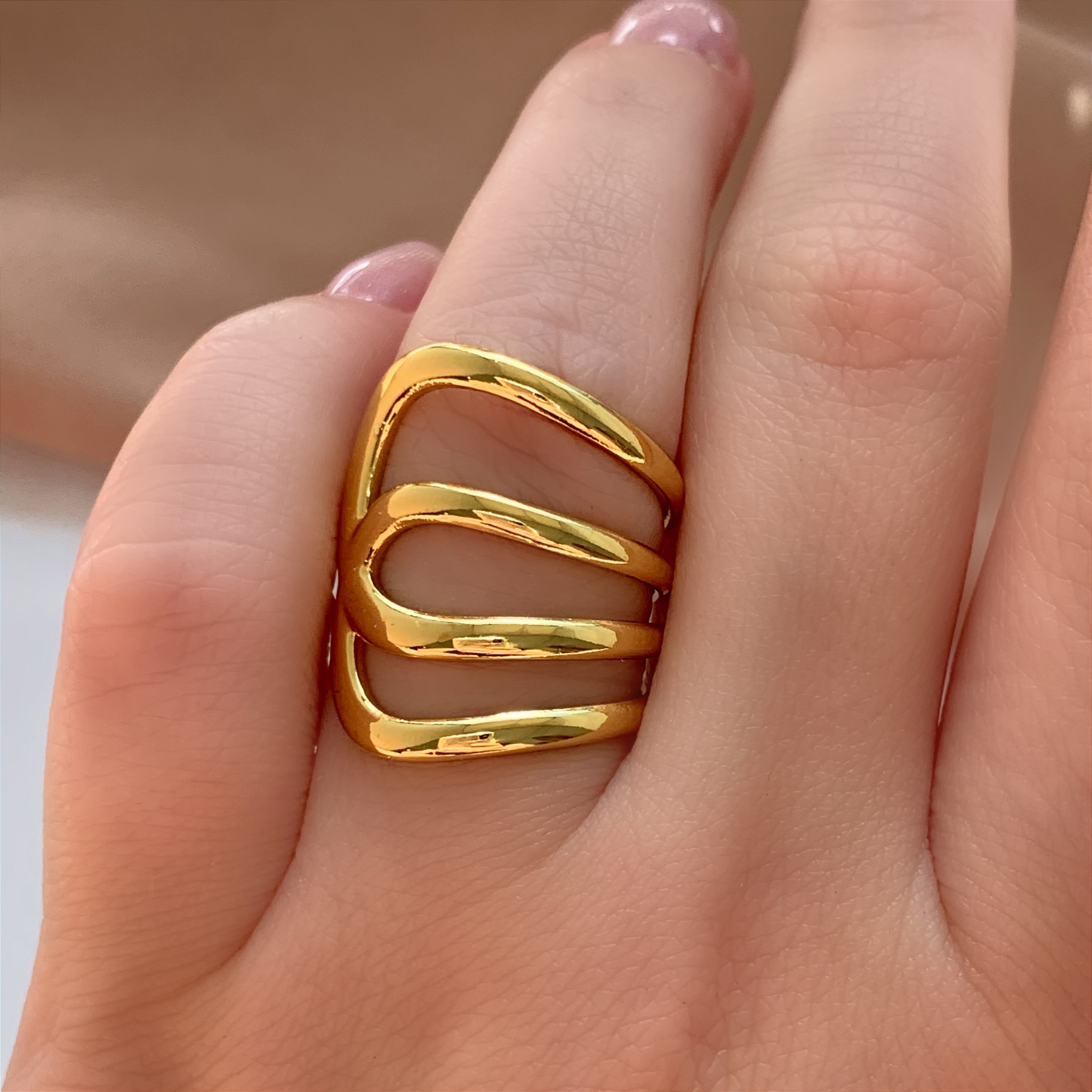 ANEL REGULÁVEL FIOS LATERAIS BOLEADOS DOURADO AÇO 316L⭐️