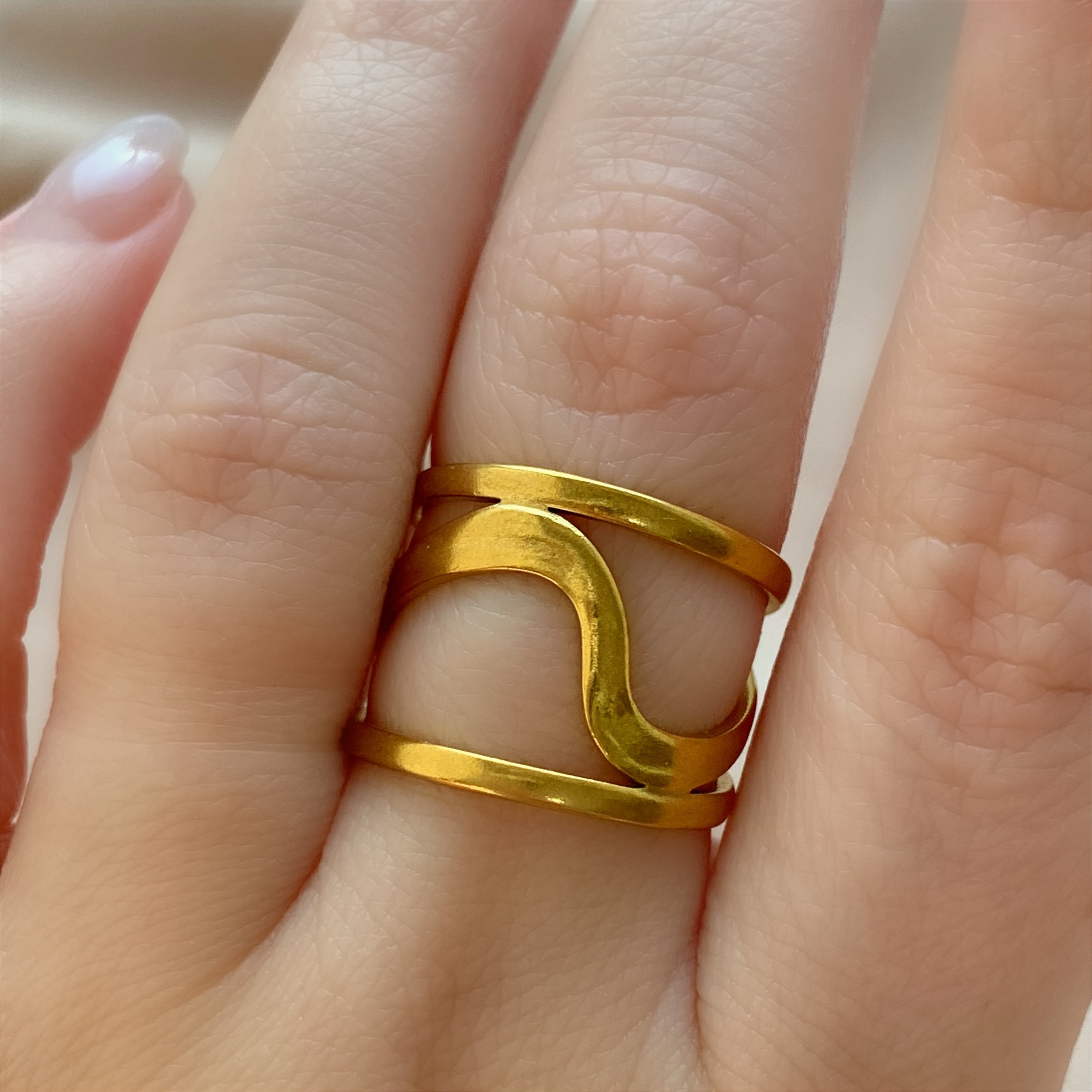 ANEL REGULÁVEL FIOS ONDA DOURADO AÇO 316L PREMIUM⭐️