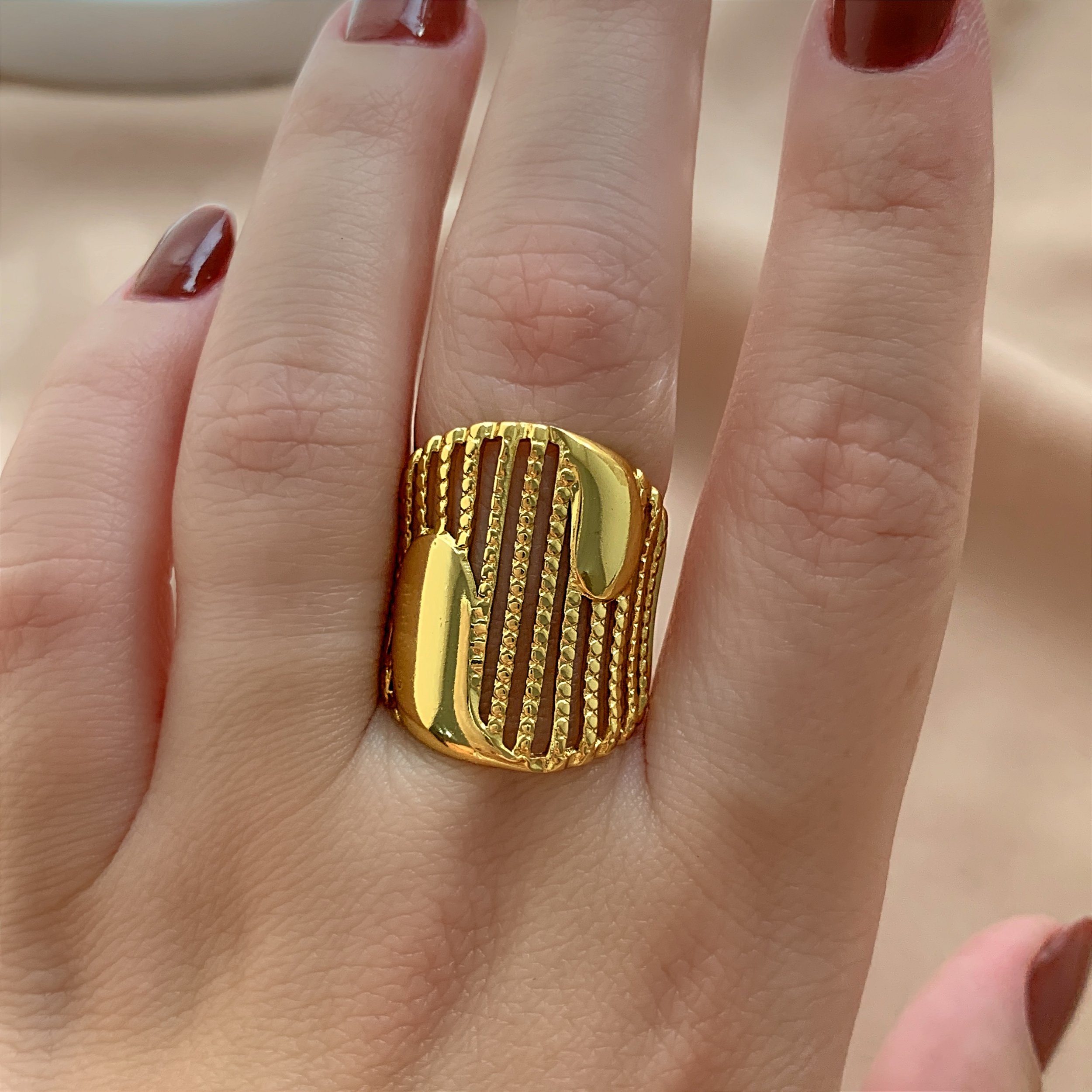 ANEL REGULÁVEL 5 FIOS CLÁSSICOS DOURADO AÇO 316L⭐️