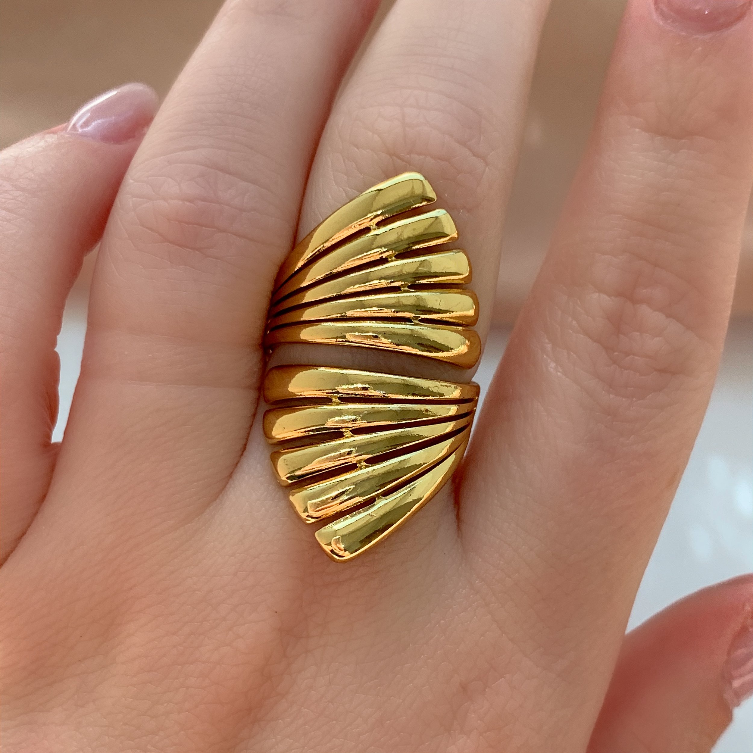ANEL REGULÁVEL LEQUE DOURADO AÇO 316L⭐️