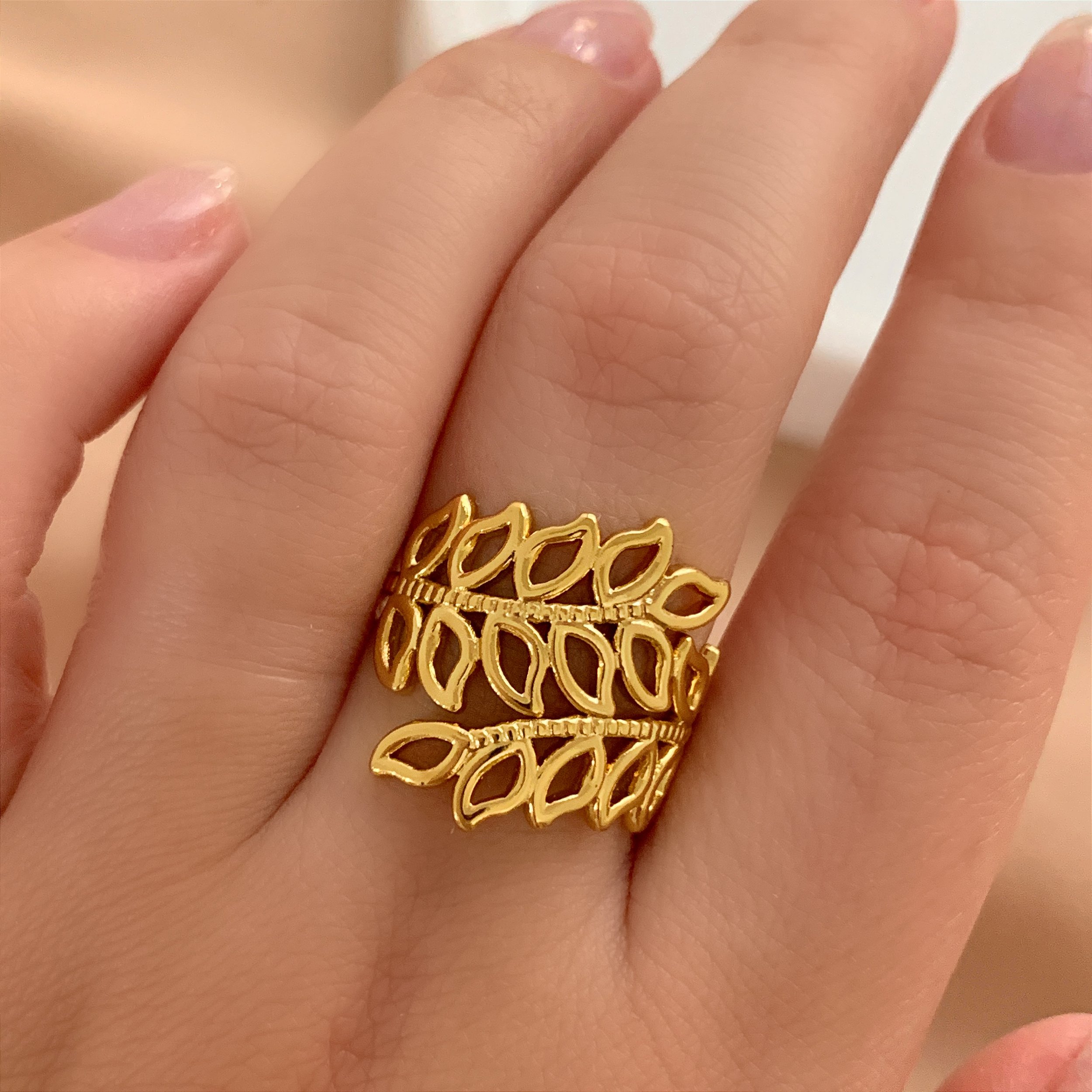 ANEL REGULÁVEL RAMINHOS VAZADOS DOURADO AÇO 316L⭐️