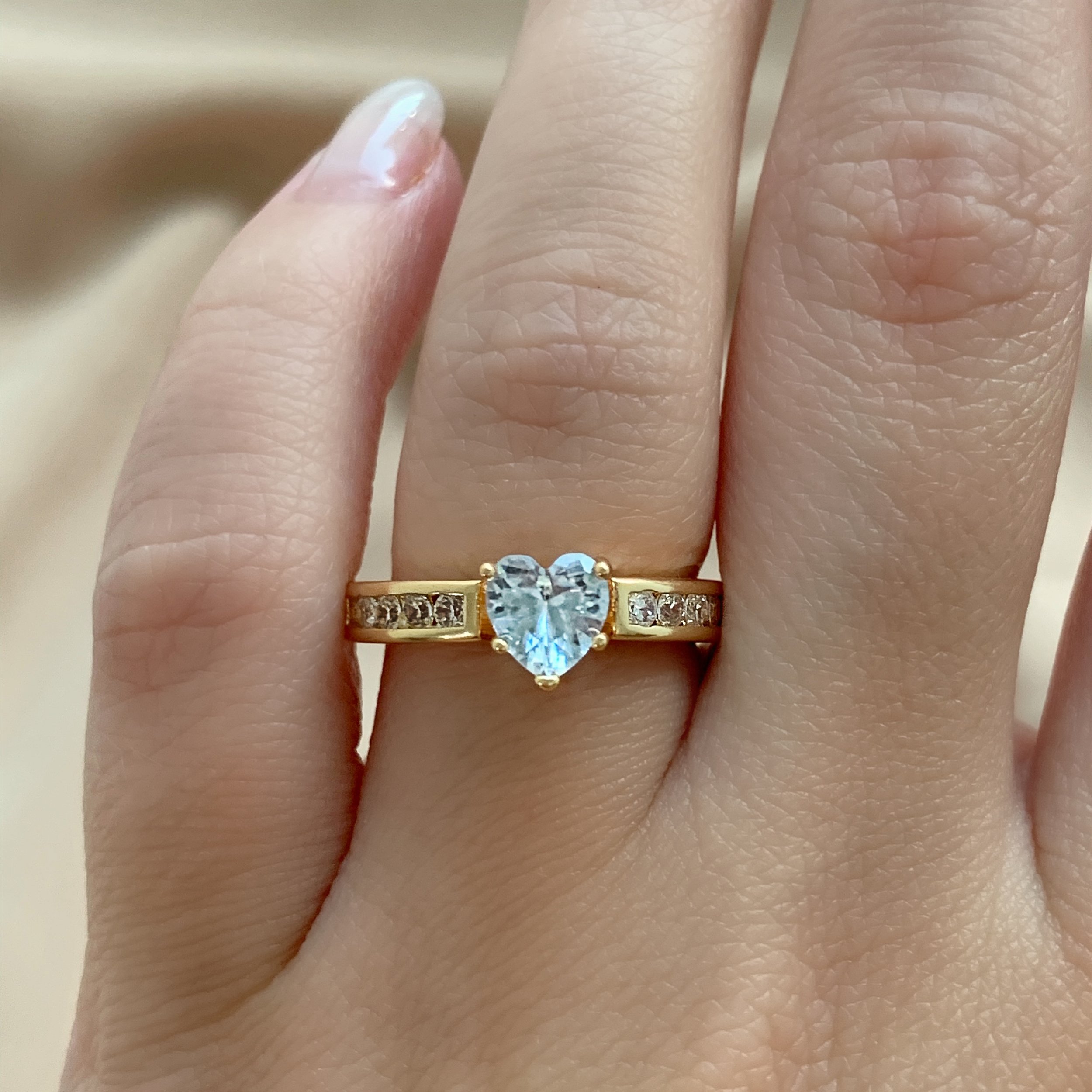ANEL SOLITÁRIO CORAÇÃO COM ZIRCÔNIAS DOURADO BIJU