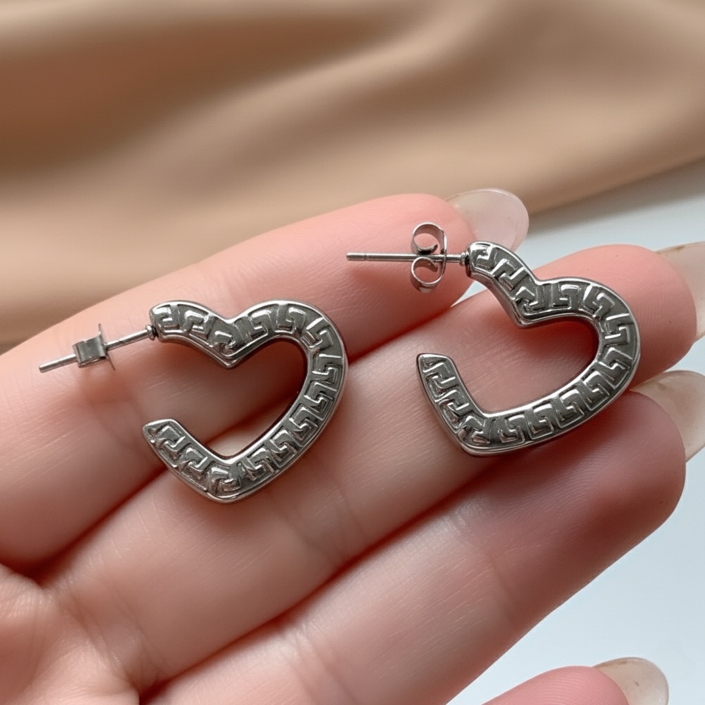 BRINCO ARGOLA CORAÇÃO TEXTURIZADO AÇO 316L⭐️