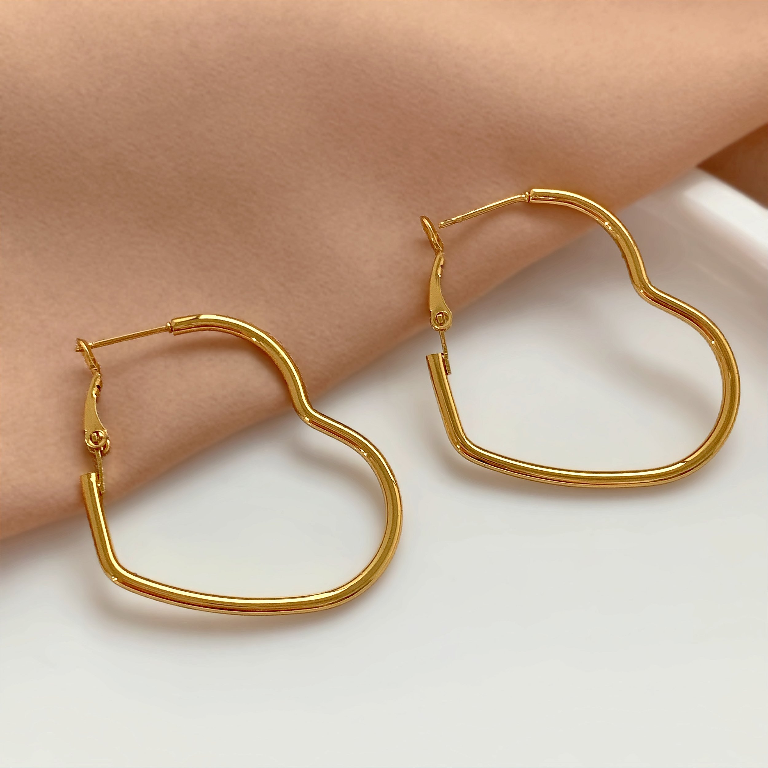 BRINCO ARGOLA CORAÇÃO M FECHO ENCAIXE DOURADO AÇO 316L⭐️