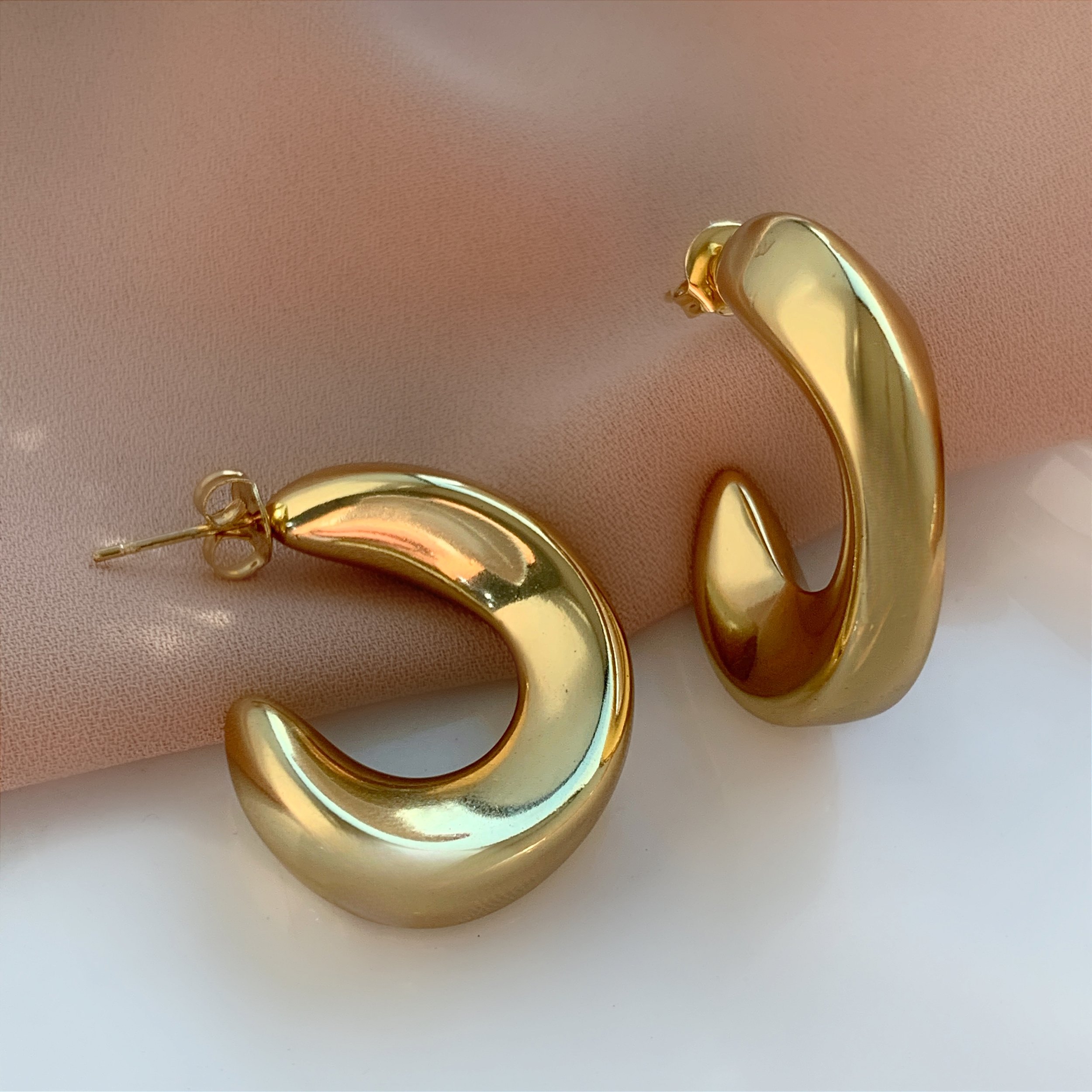 BRINCO ARGOLA GROSSA CURVADA DOURADO AÇO 316L⭐️