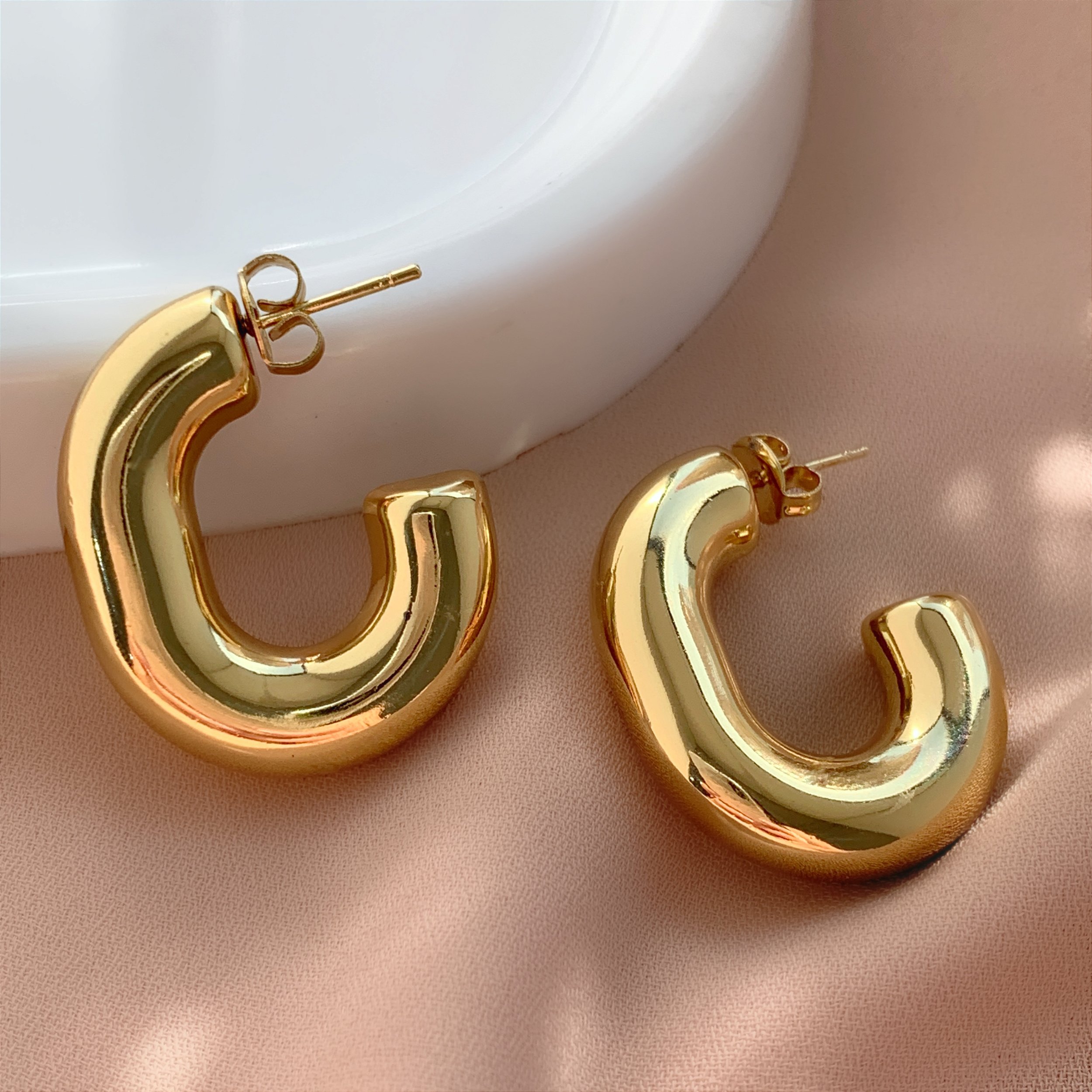 BRINCO ARGOLA GROSSA OVAL DOURADO AÇO 316L⭐️