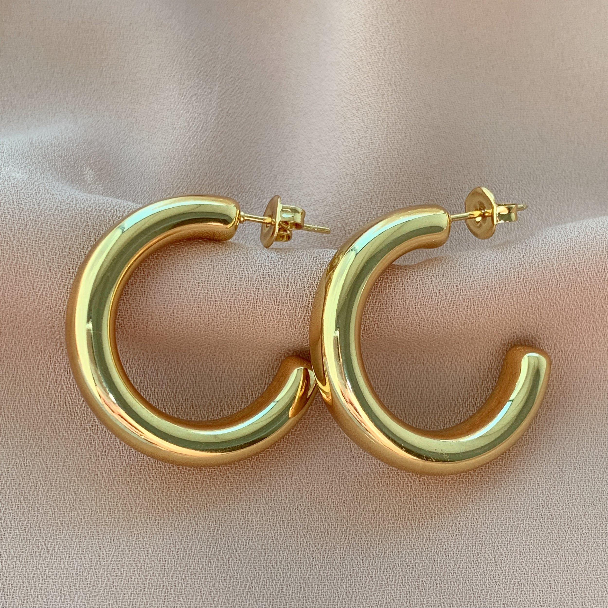 BRINCO ARGOLA MÉDIA LISA DOURADO AÇO 316L⭐️