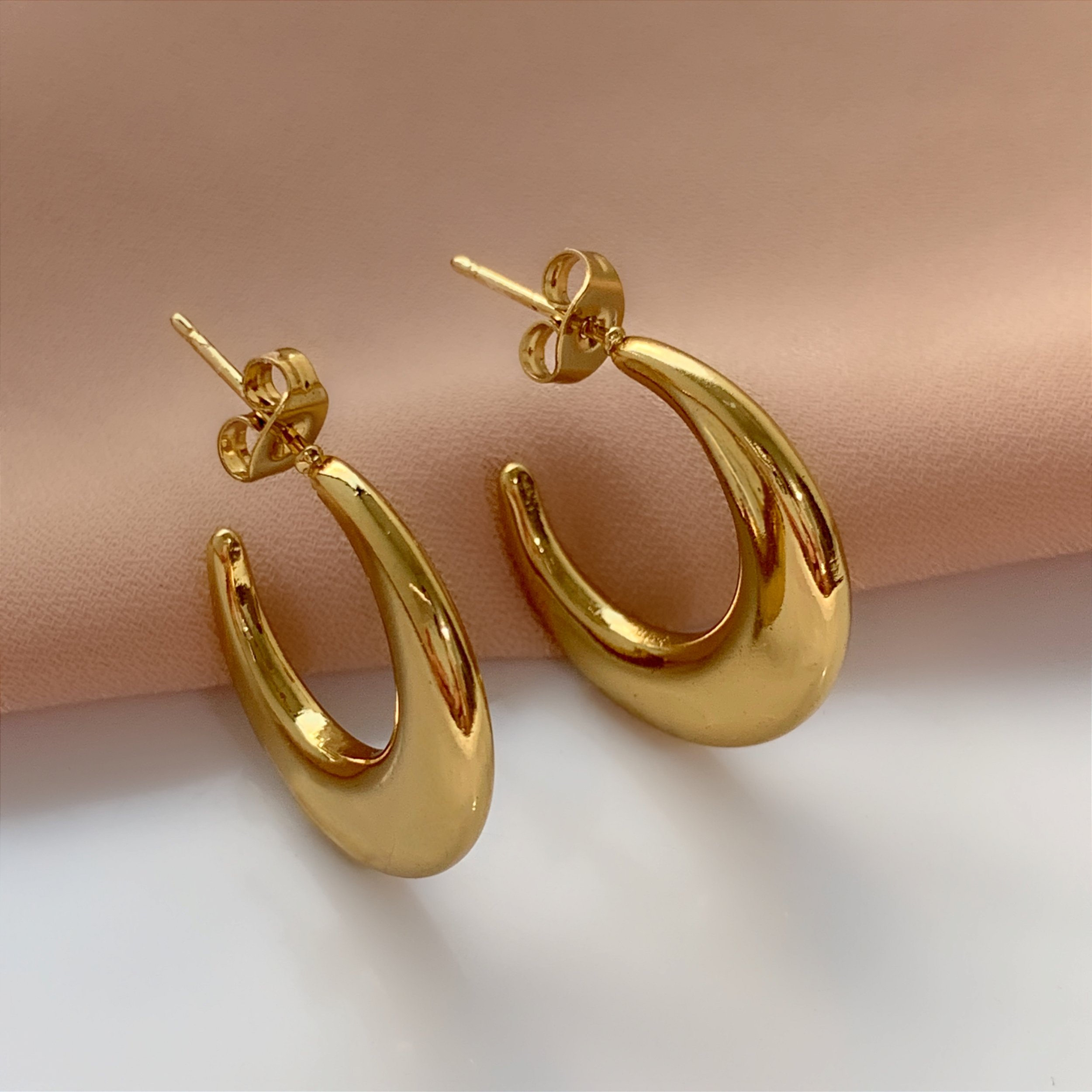 BRINCO ARGOLA MEIA LUA M DOURADO AÇO 316L⭐️