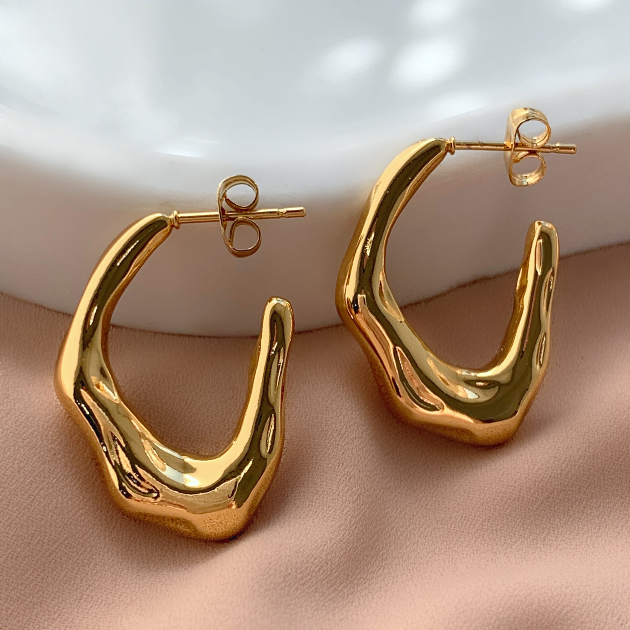 BRINCO ARGOLA OVAL ORGÂNICA DOURADO AÇO 316L⭐️