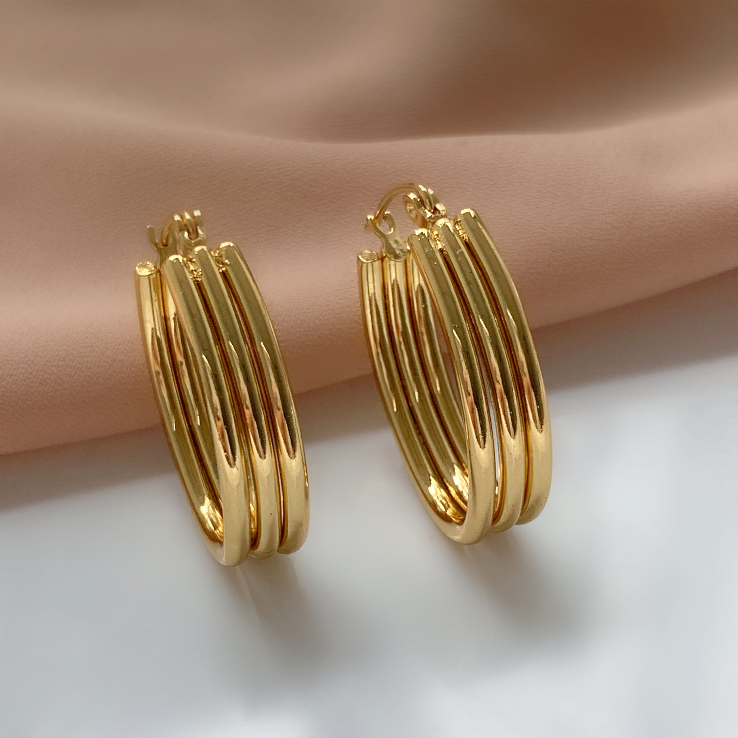 BRINCO ARGOLA OVAL TRÊS FIOS FECHO ITALIANO DOURADO AÇO 316L⭐️