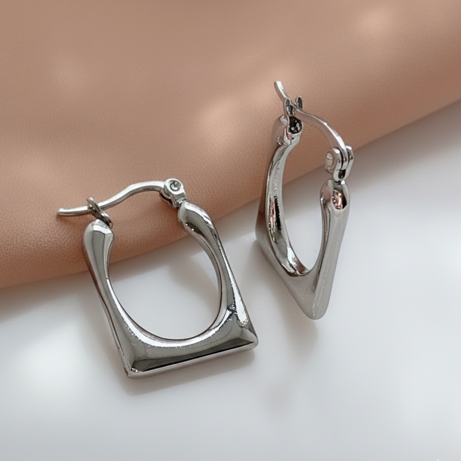 BRINCO ARGOLA RETANGULAR FECHO ITALIANO AÇO 316L⭐️
