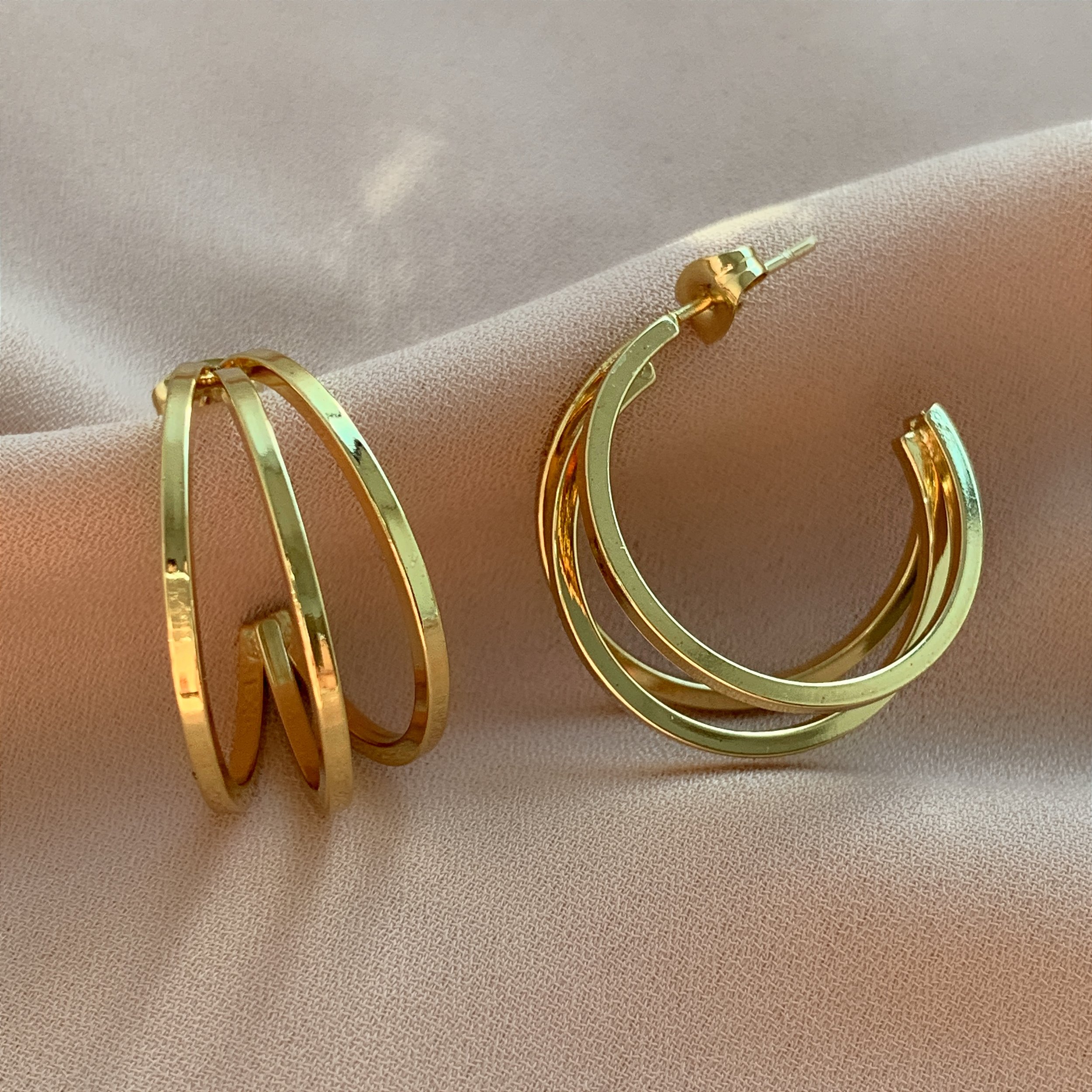 BRINCO ARGOLA TRÊS FIOS QUADRADOS DOURADO AÇO 316L⭐️