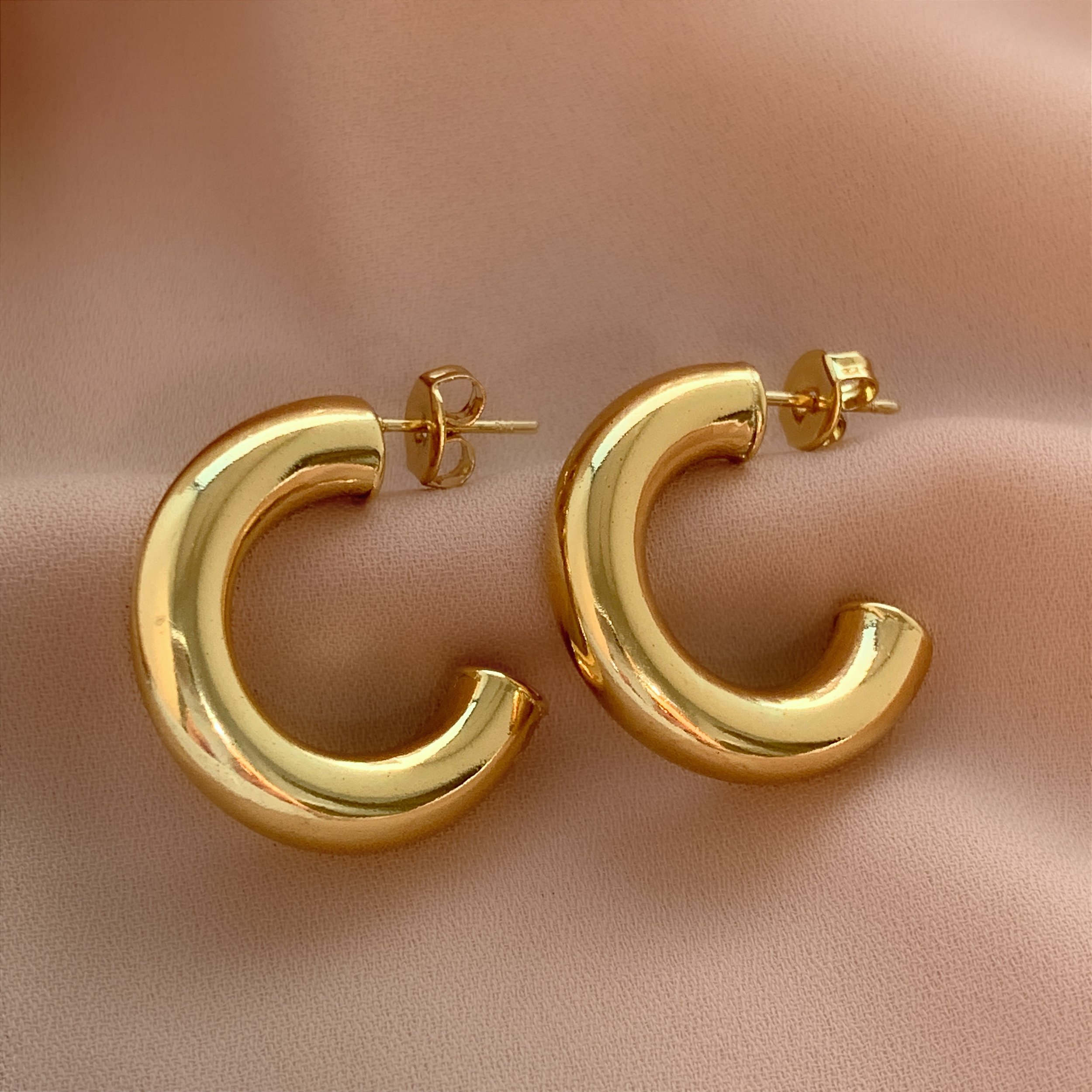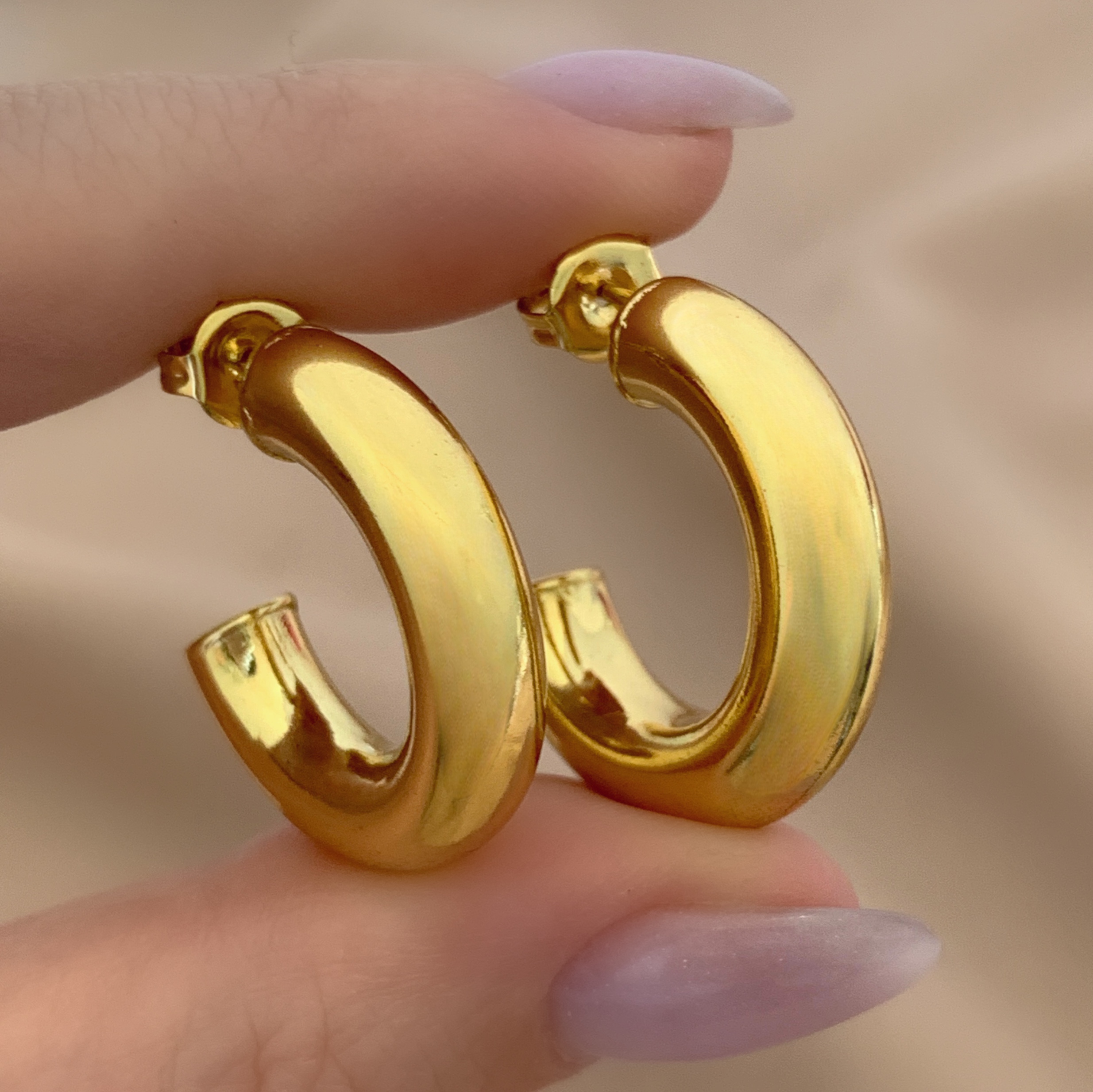BRINCO ARGOLA TUBO P GROSSA DOURADO AÇO 316L⭐️