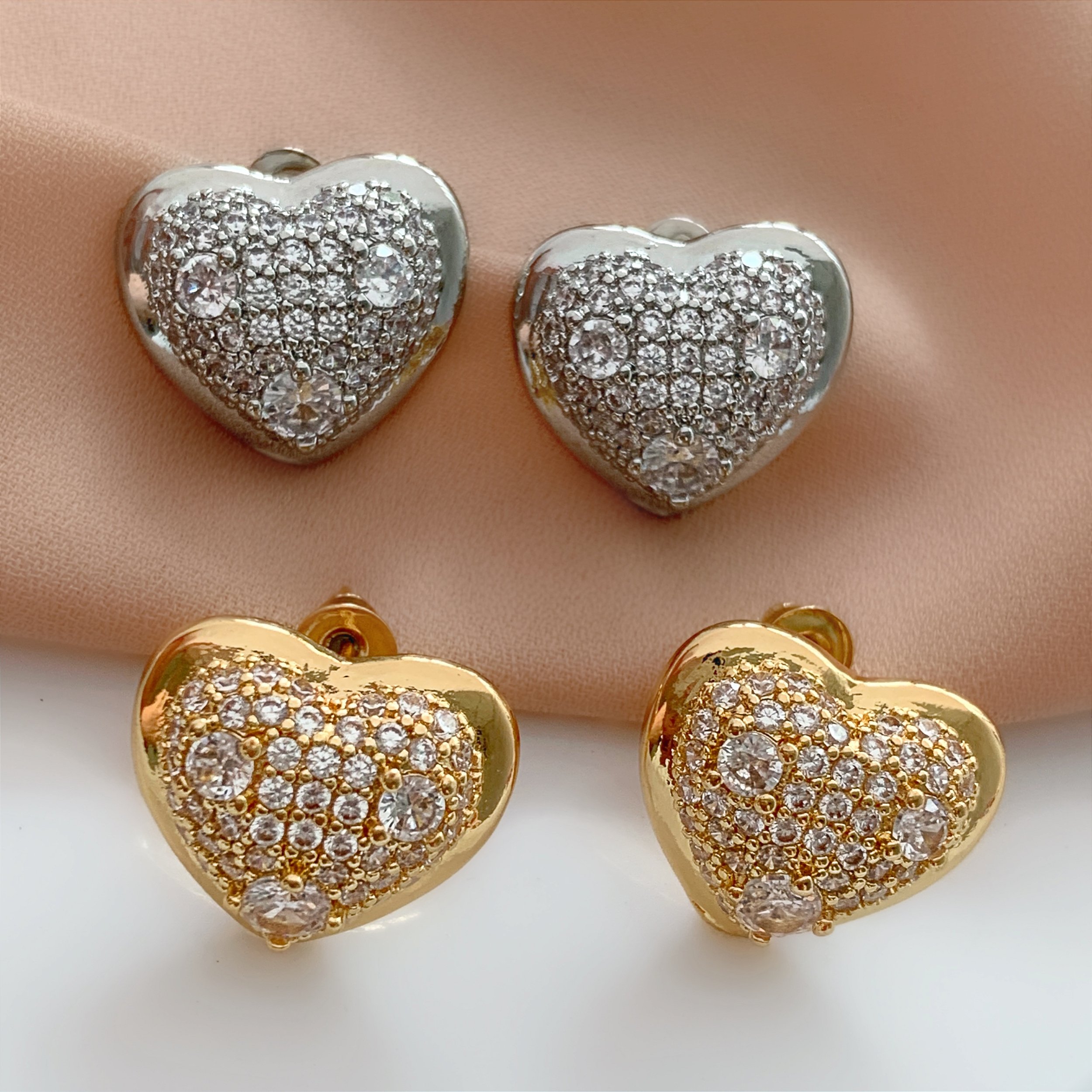 BRINCO CORAÇÃO PEDRAS DIVERSAS CRAVEJADAS ZIRCÔNIAS BIJU