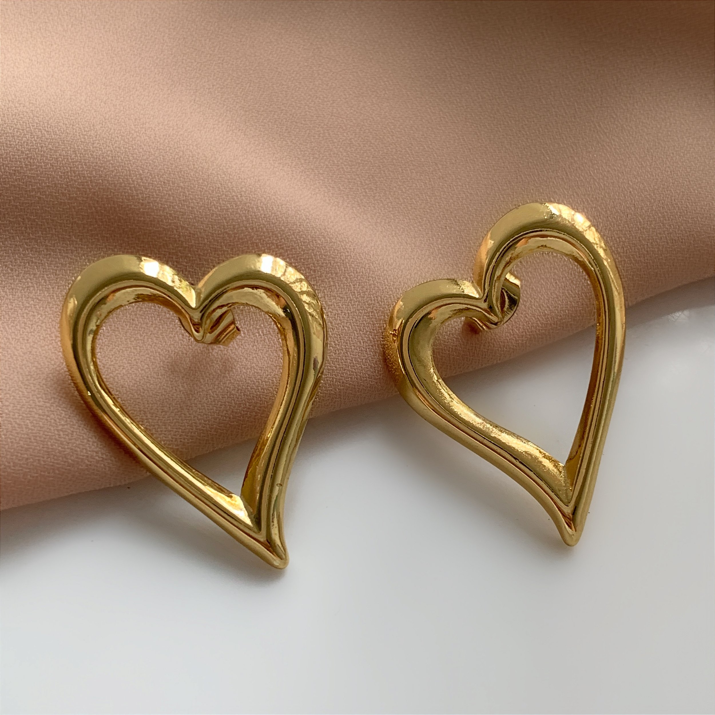 BRINCO CORAÇÃO VAZADO CURVADO DOURADO AÇO 316L⭐️