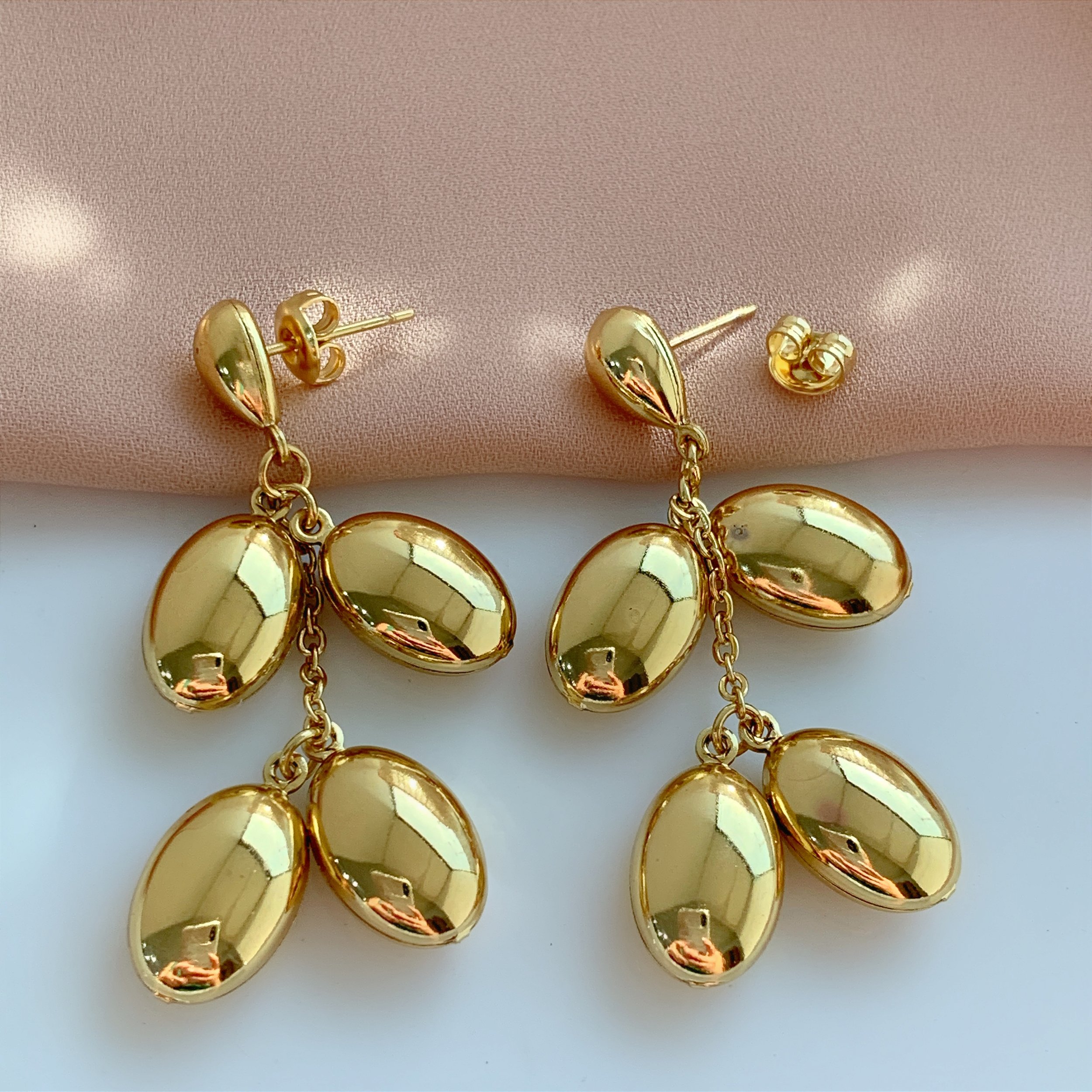 BRINCO DETALHES OVAIS PENDENTES DOURADO AÇO 316L⭐️