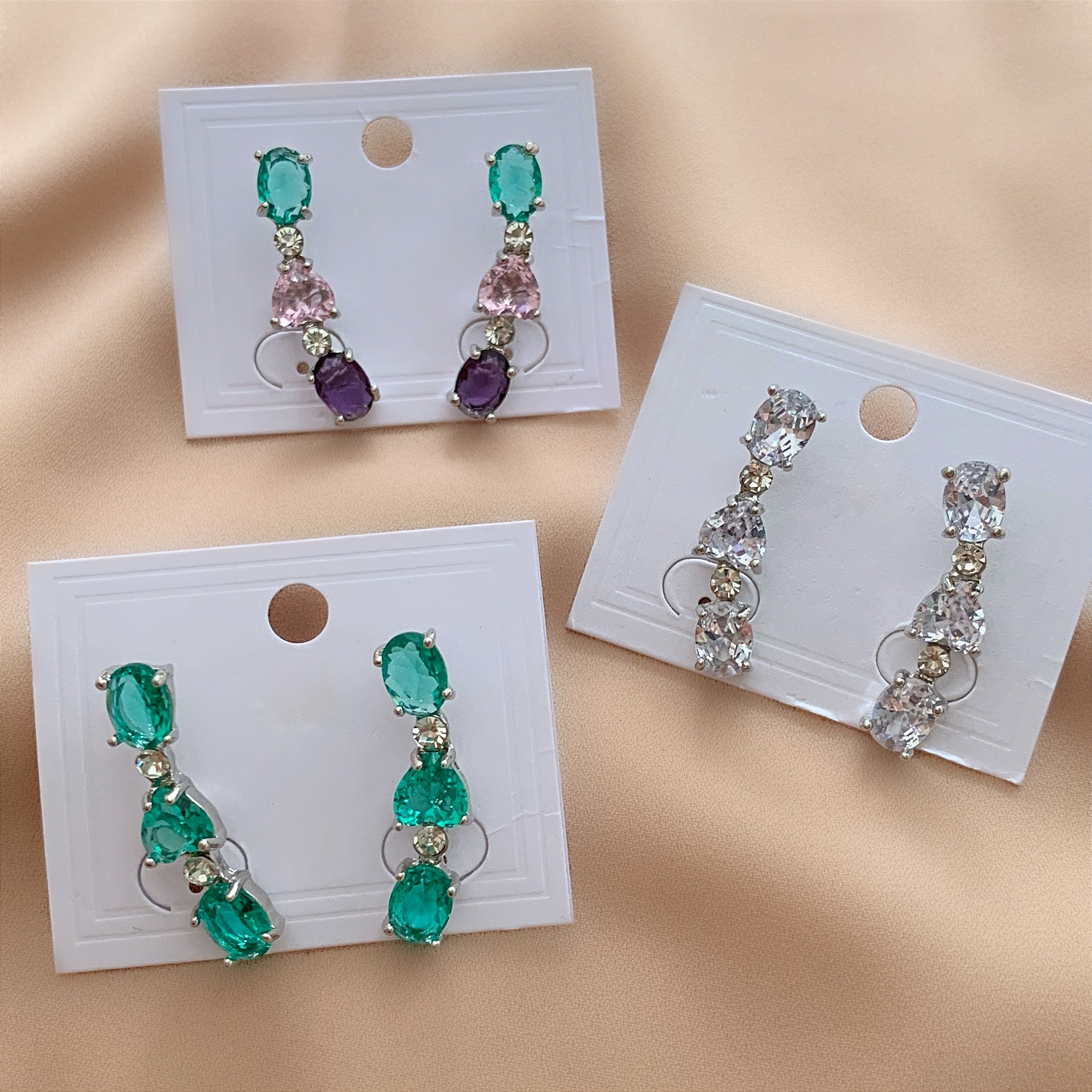 BRINCO EAR CUFF PEDRAS ZIRCÔNIAS OVAIS E CORAÇÃO PRATEADO BIJU