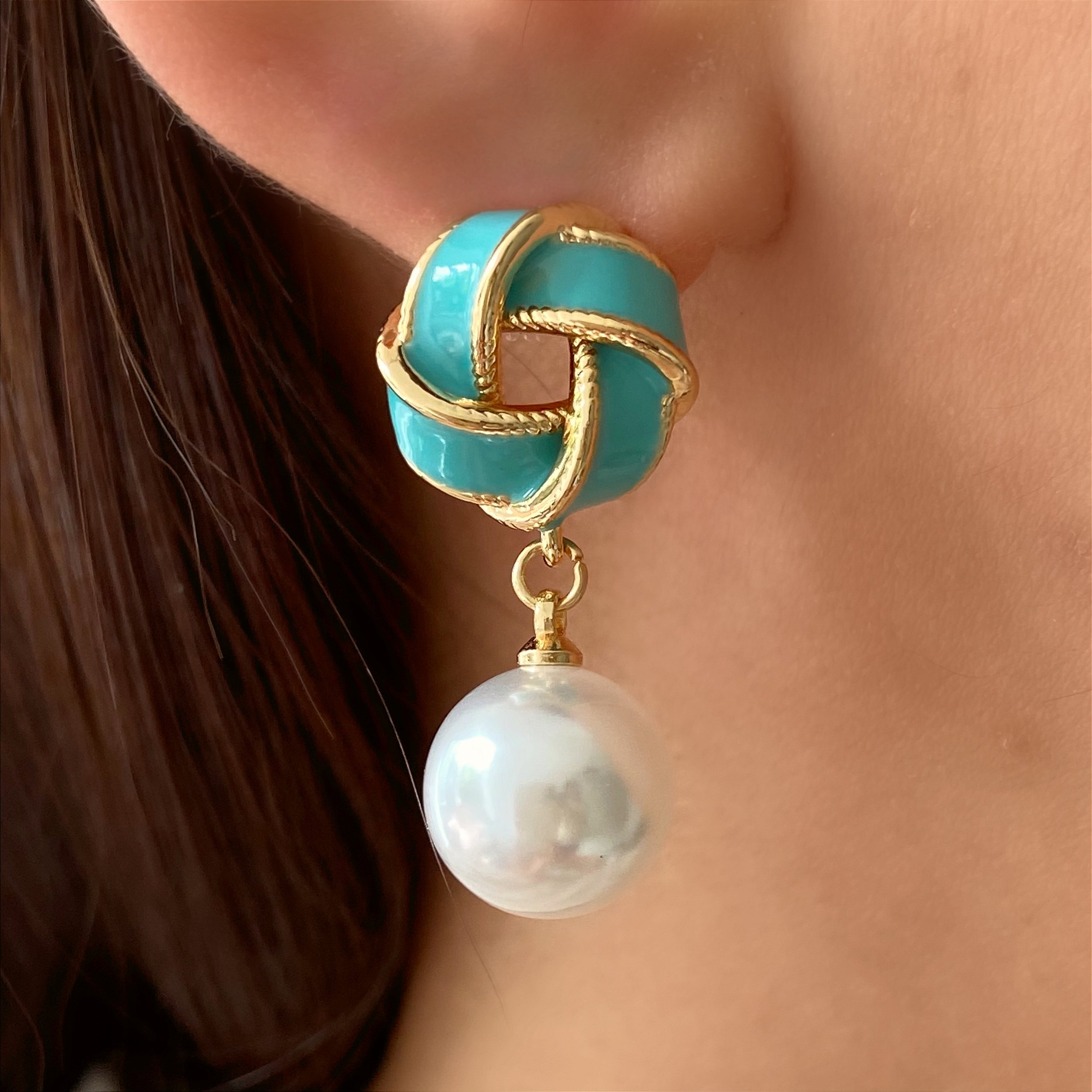 BRINCO ENTRELAÇADO ESMALTADO PÉROLA PENDENTE G2 BIJU
