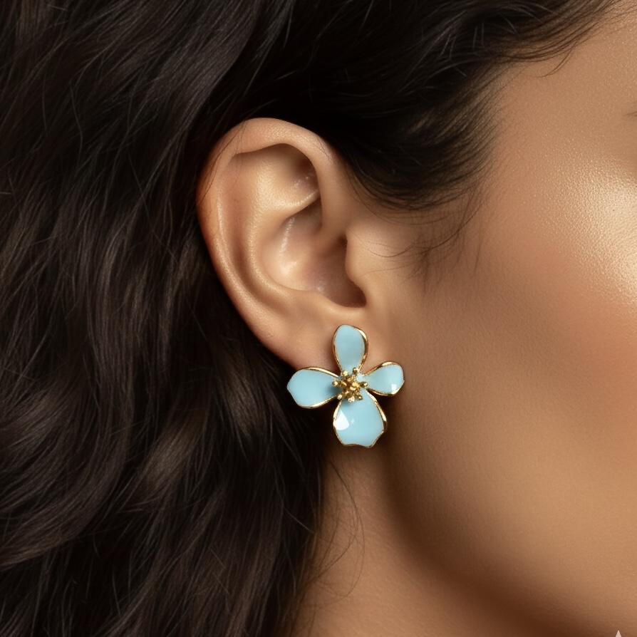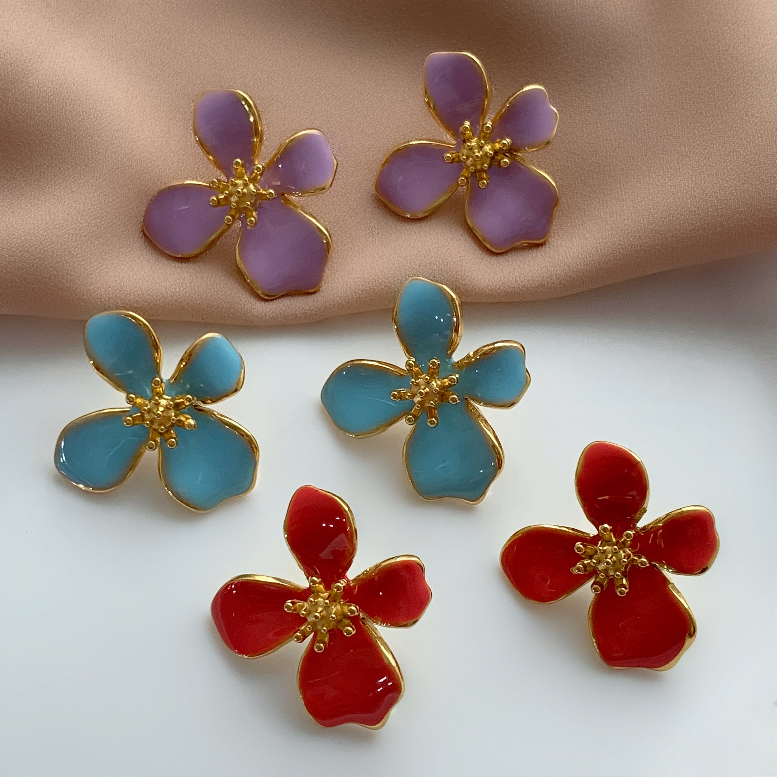 BRINCO ESMALTADO PÉTALAS ASSIMÉTRICAS G2 DOURADO AÇO 316L PREMIUM⭐️
