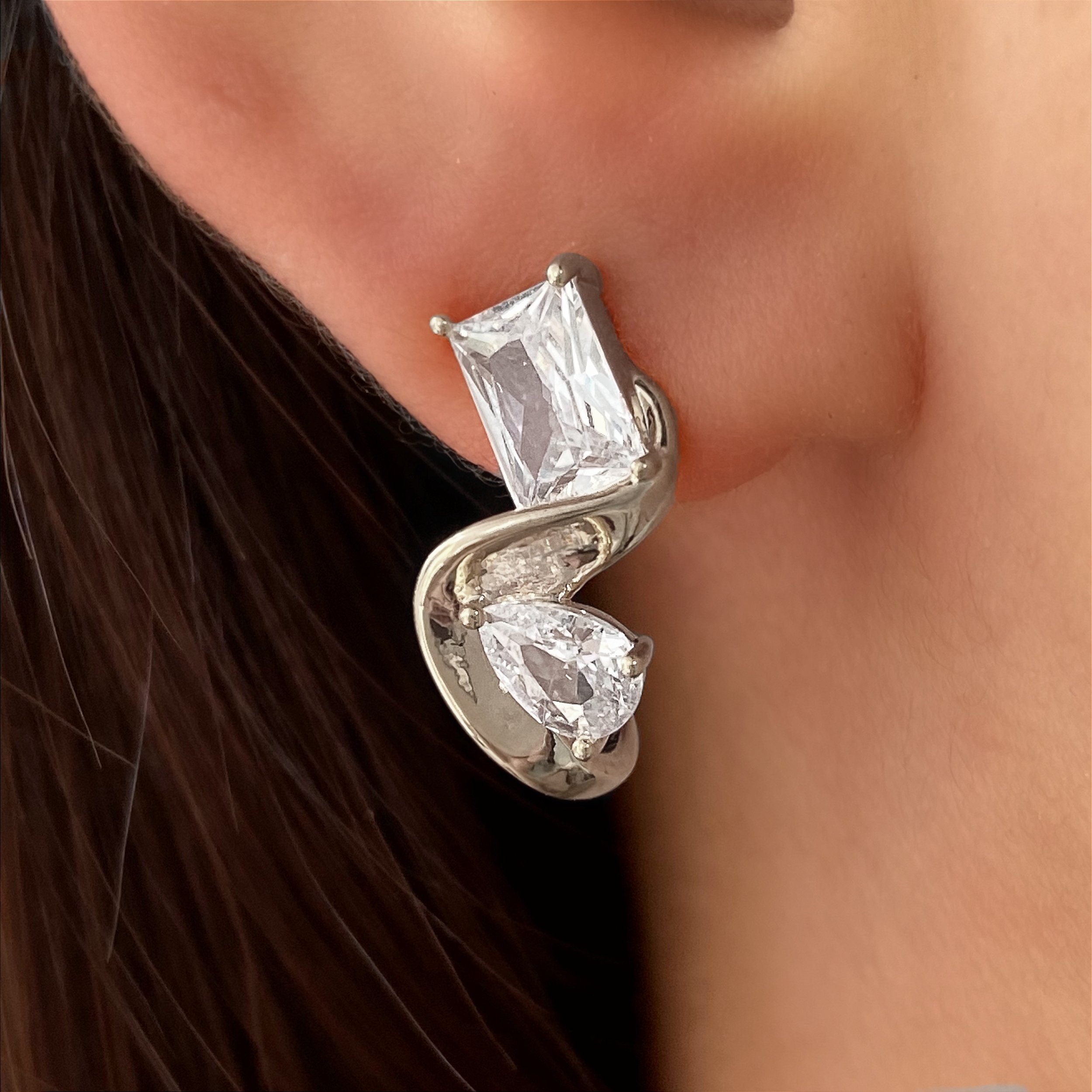 BRINCO FIO ONDA PEDRAS ZIRCÔNIAS FORMATOS BIJU