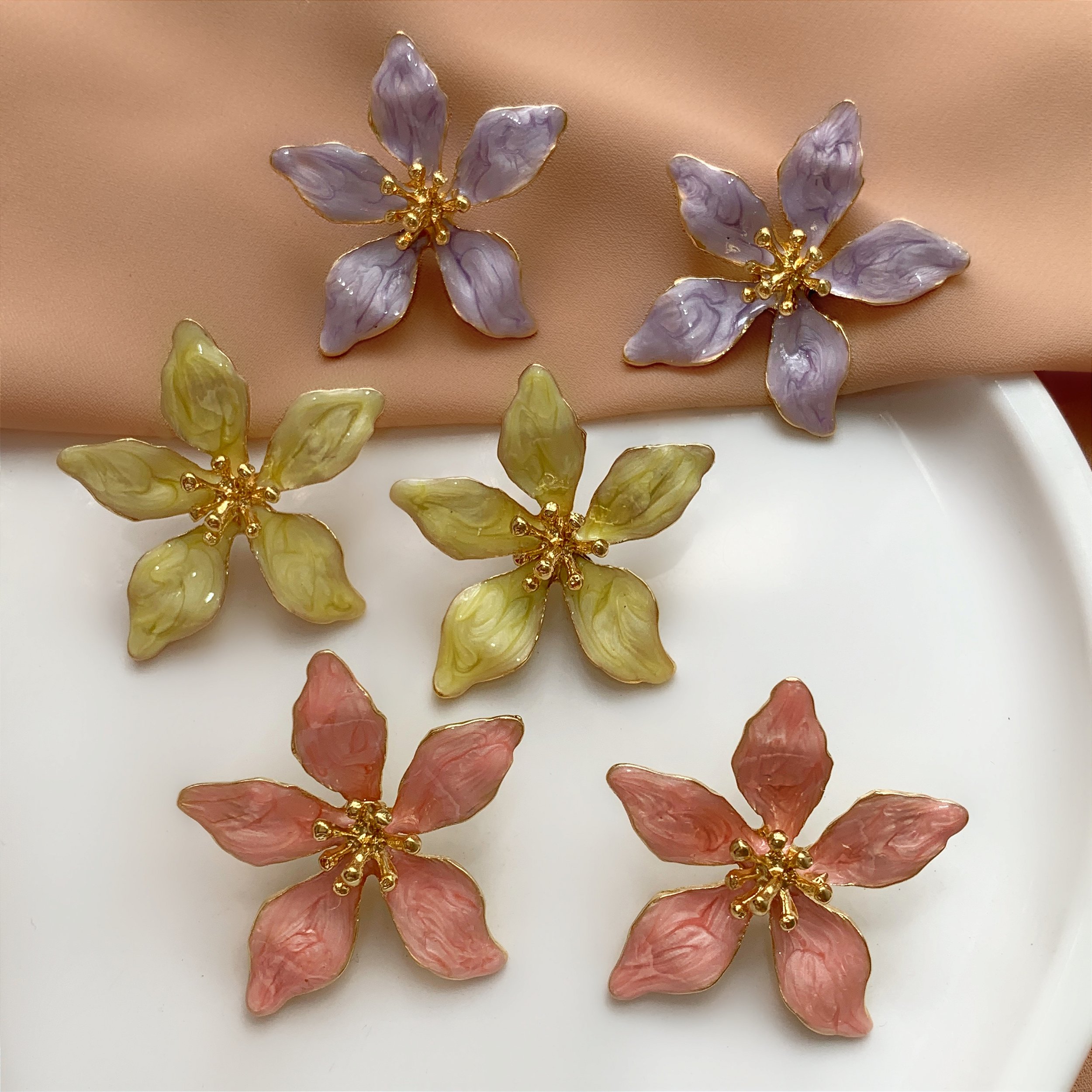 BRINCO FLOR DE HIBISCO ESMALTADA G2 DOURADO BIJU