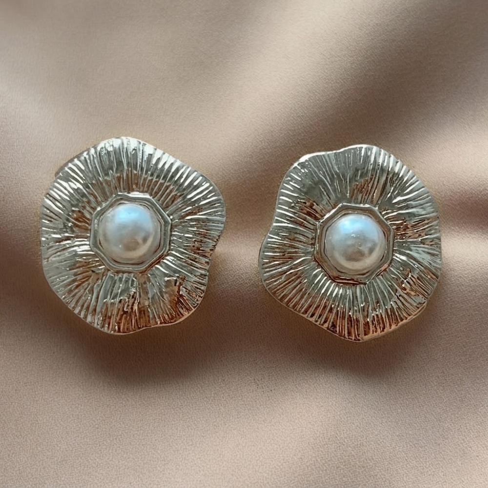 BRINCO FLOR ORGÂNICA RISCADA DOURADO AÇO 316L⭐️