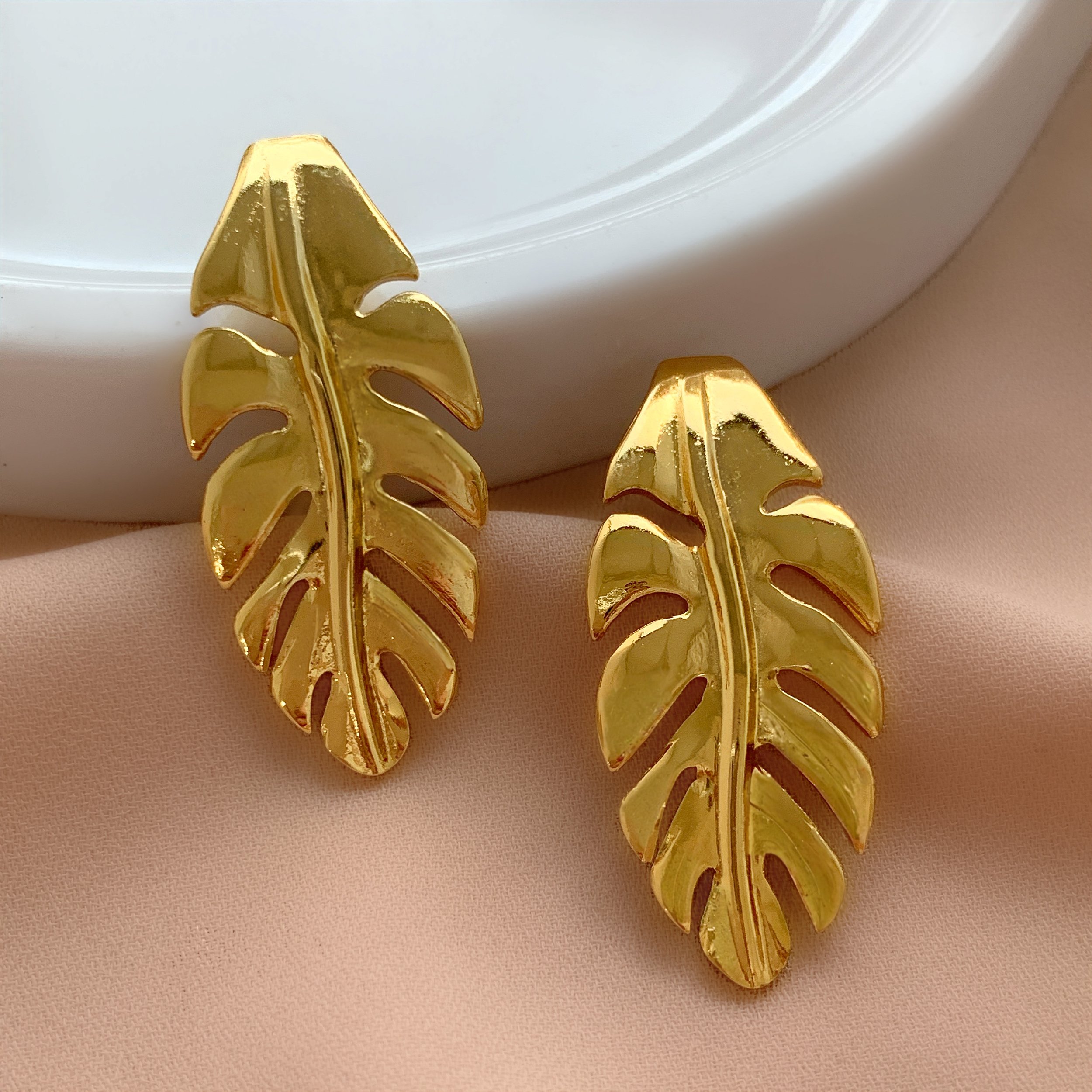 BRINCO FOLHA ALONGADA DOURADO AÇO 316L⭐️