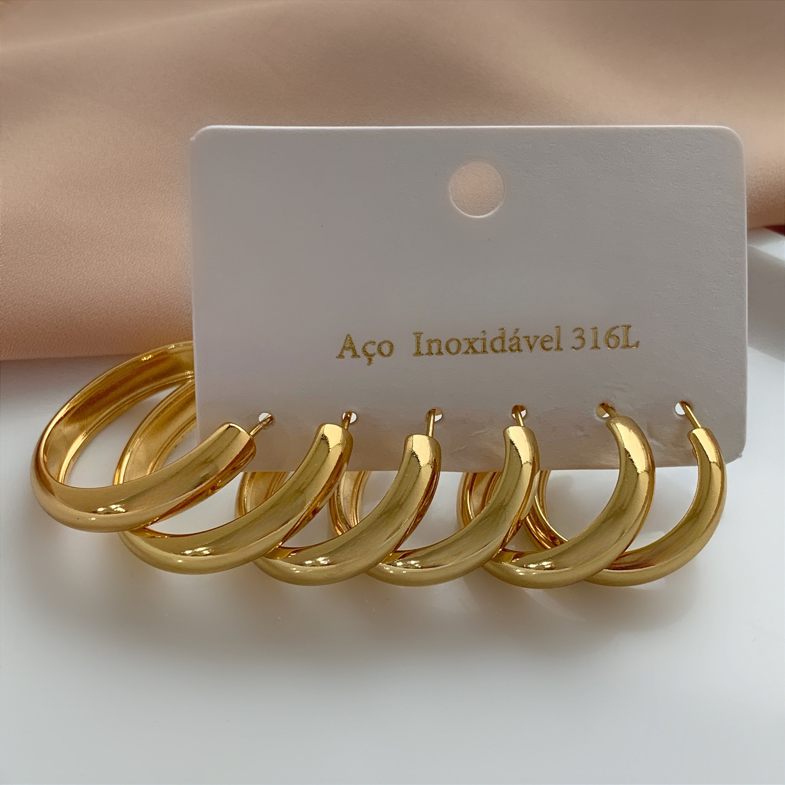 BRINCO KIT ARGOLAS CLÁSSICAS DOURADO AÇO 316L⭐️