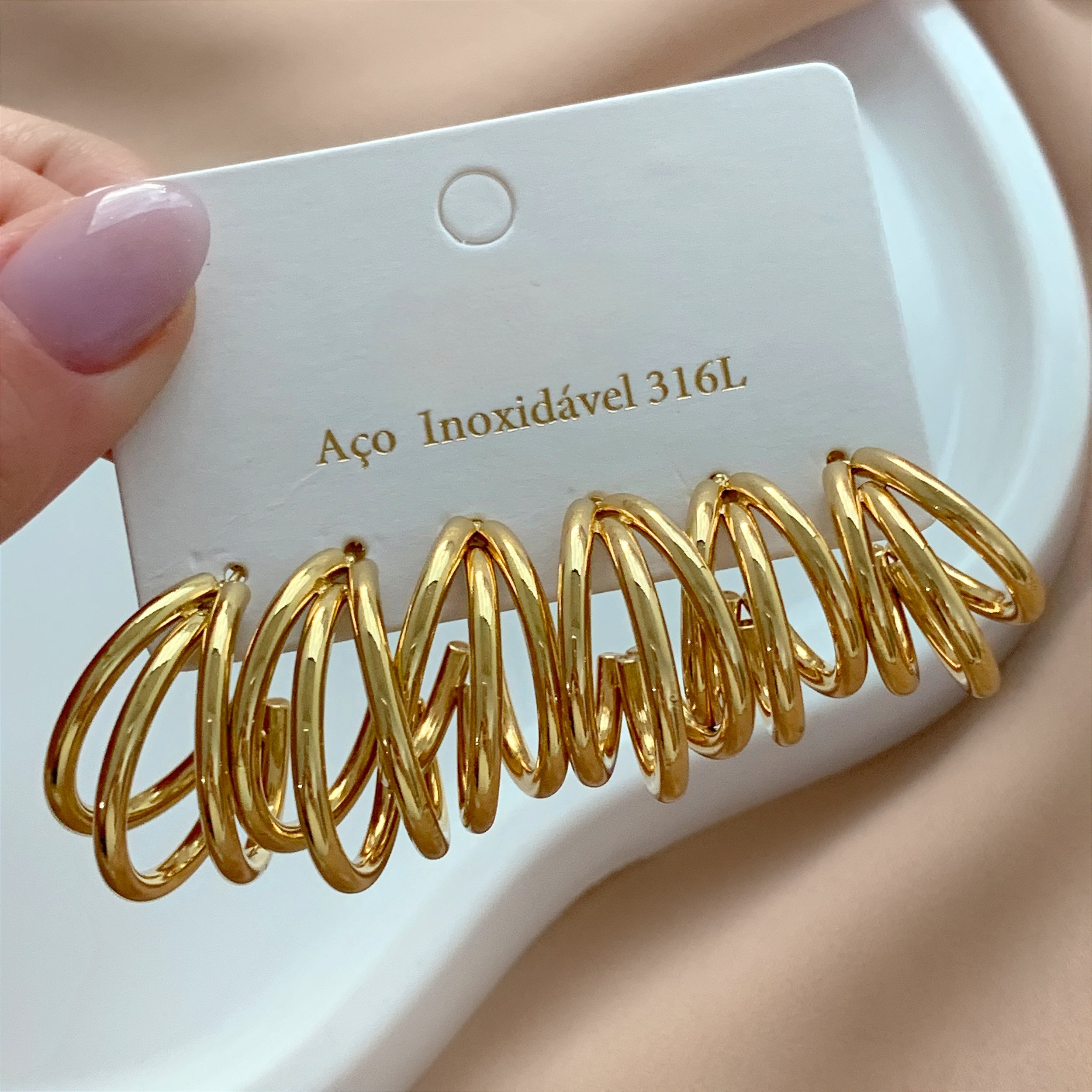 BRINCO KIT ARGOLAS TRÊS FIOS TUBOS FINOS DOURADO AÇO 316L⭐️