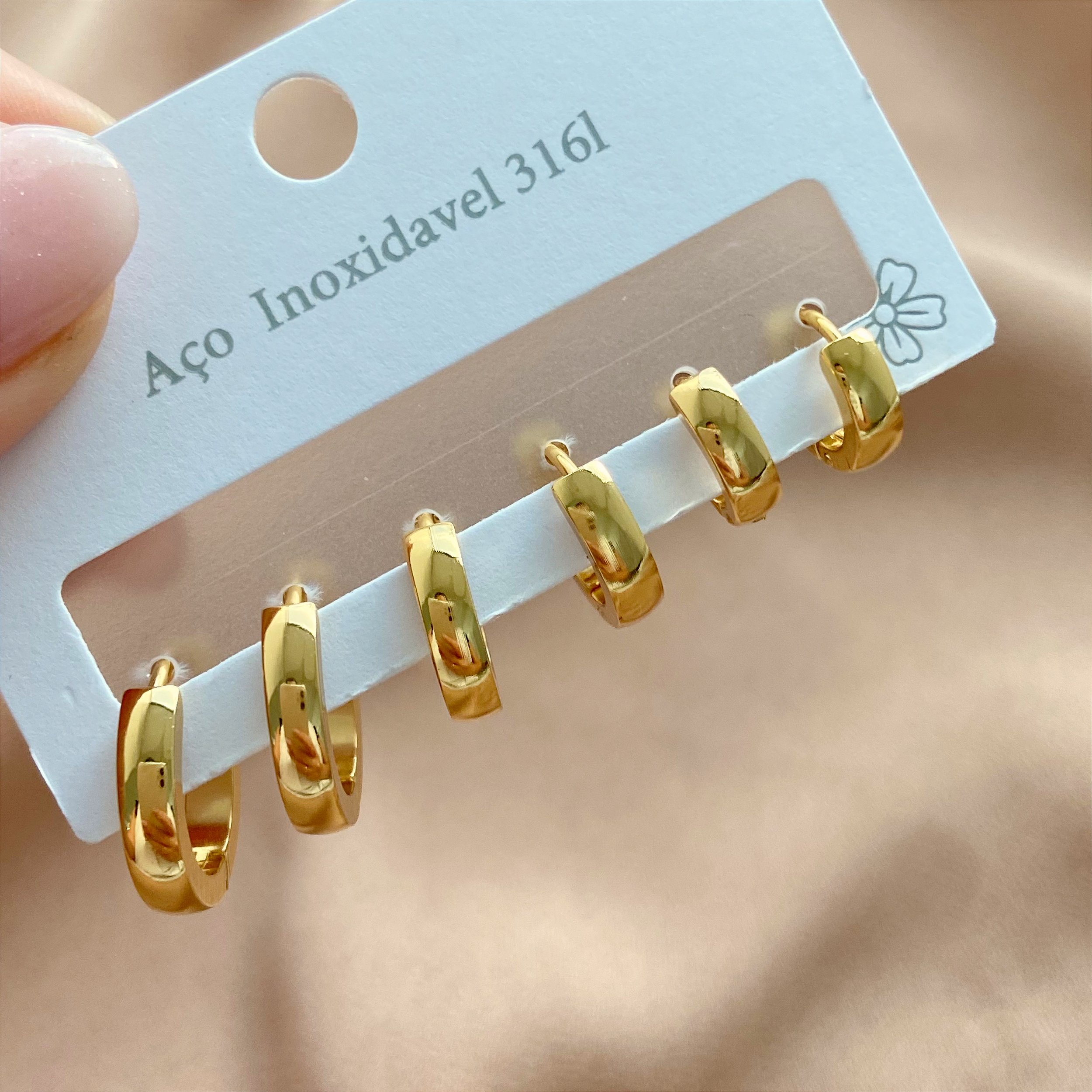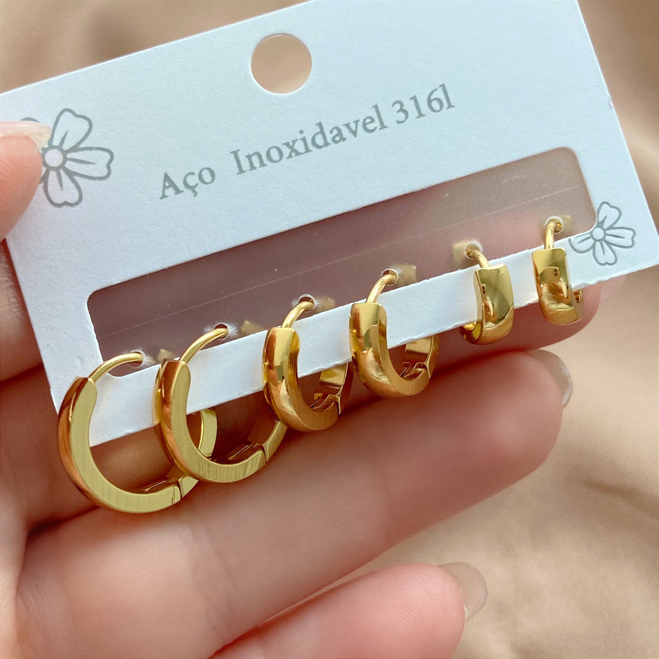 BRINCO KIT ARGOLINHAS CLÁSSICAS RETAS AÇO 316L