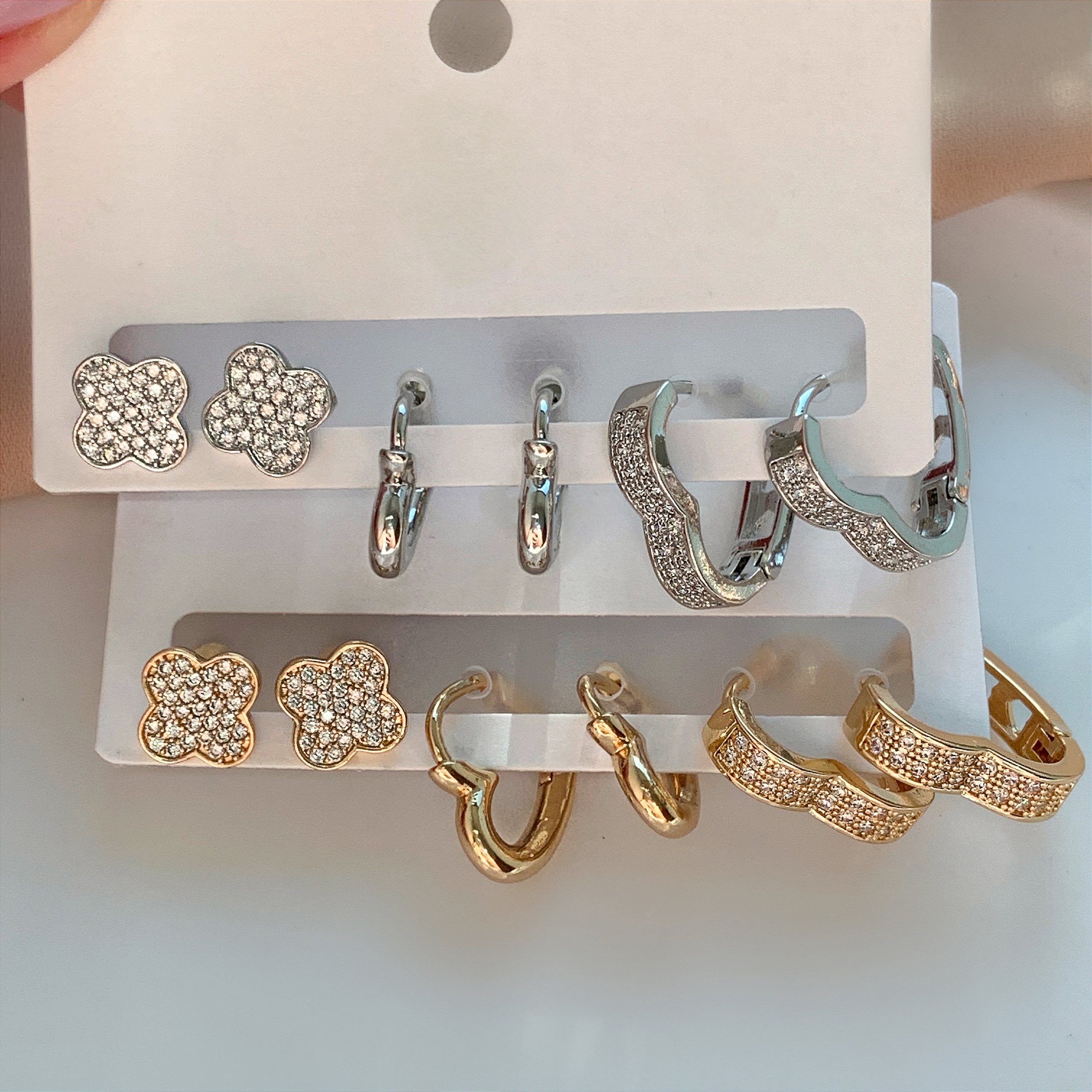 BRINCO KIT ARGOLINHAS CORAÇÕES E TREVO ZIRCÔNIAS NATH BIJU