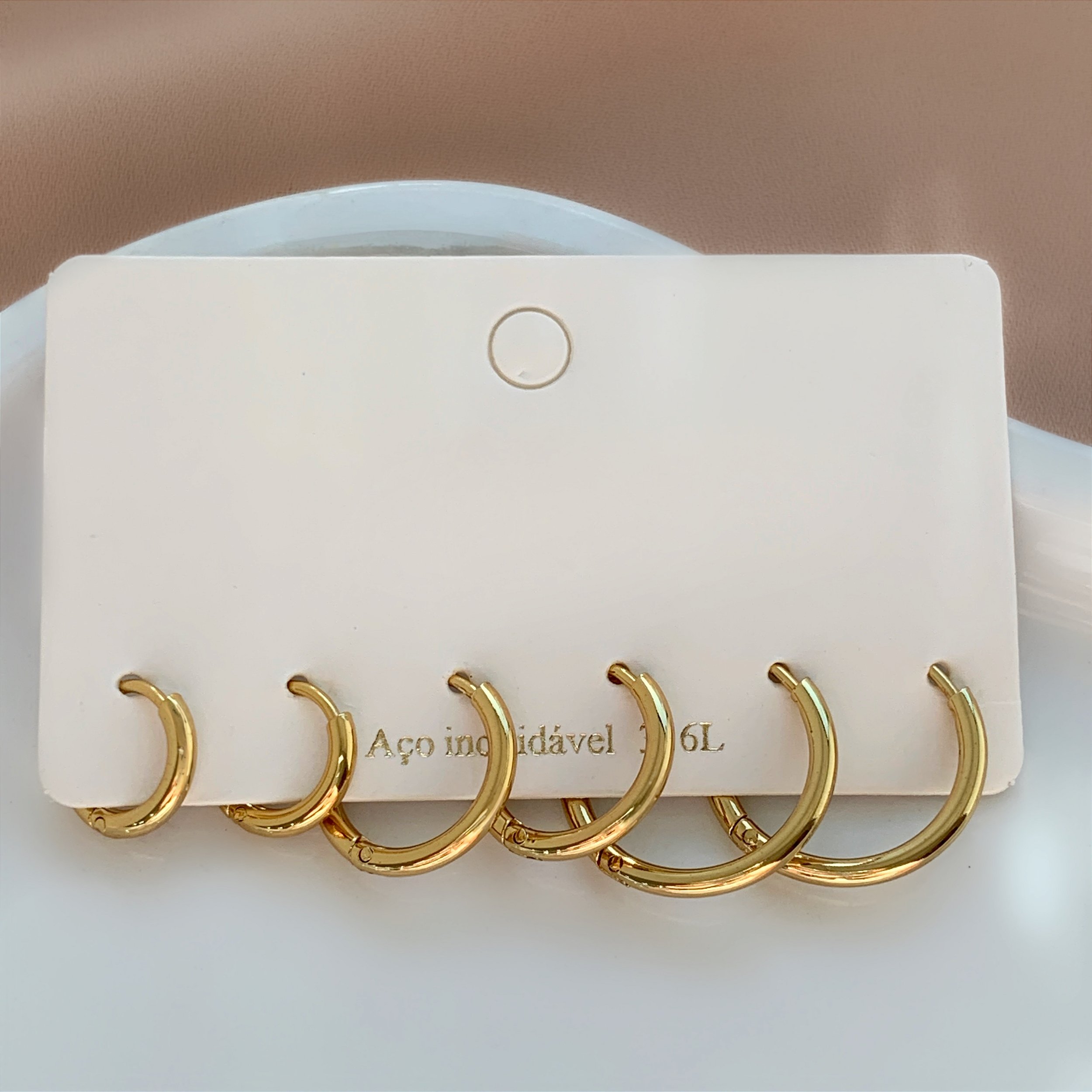 BRINCO KIT ARGOLINHAS FINAS DELICADAS DOURADO AÇO 316L⭐️