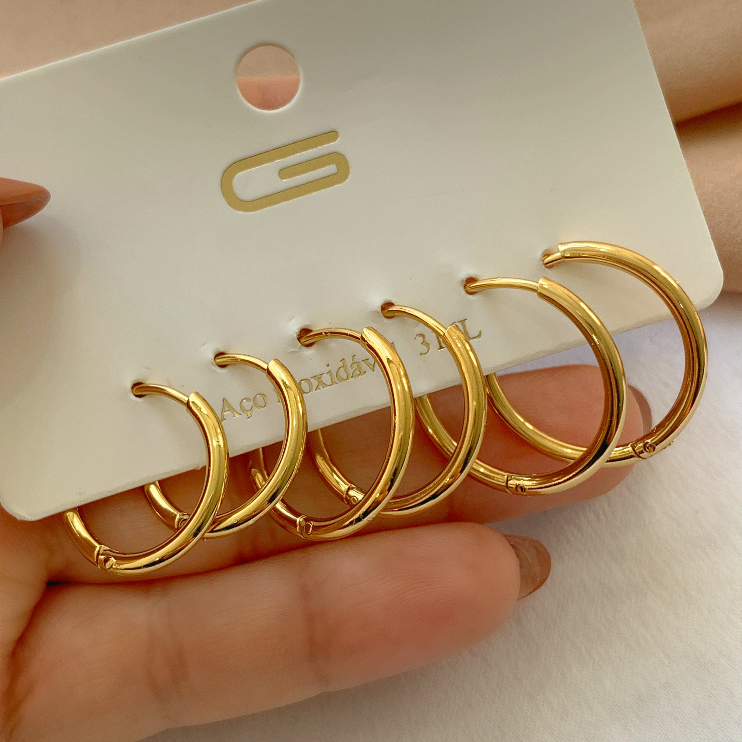 BRINCO KIT ARGOLINHAS FINAS DOURADO AÇO 316L⭐️