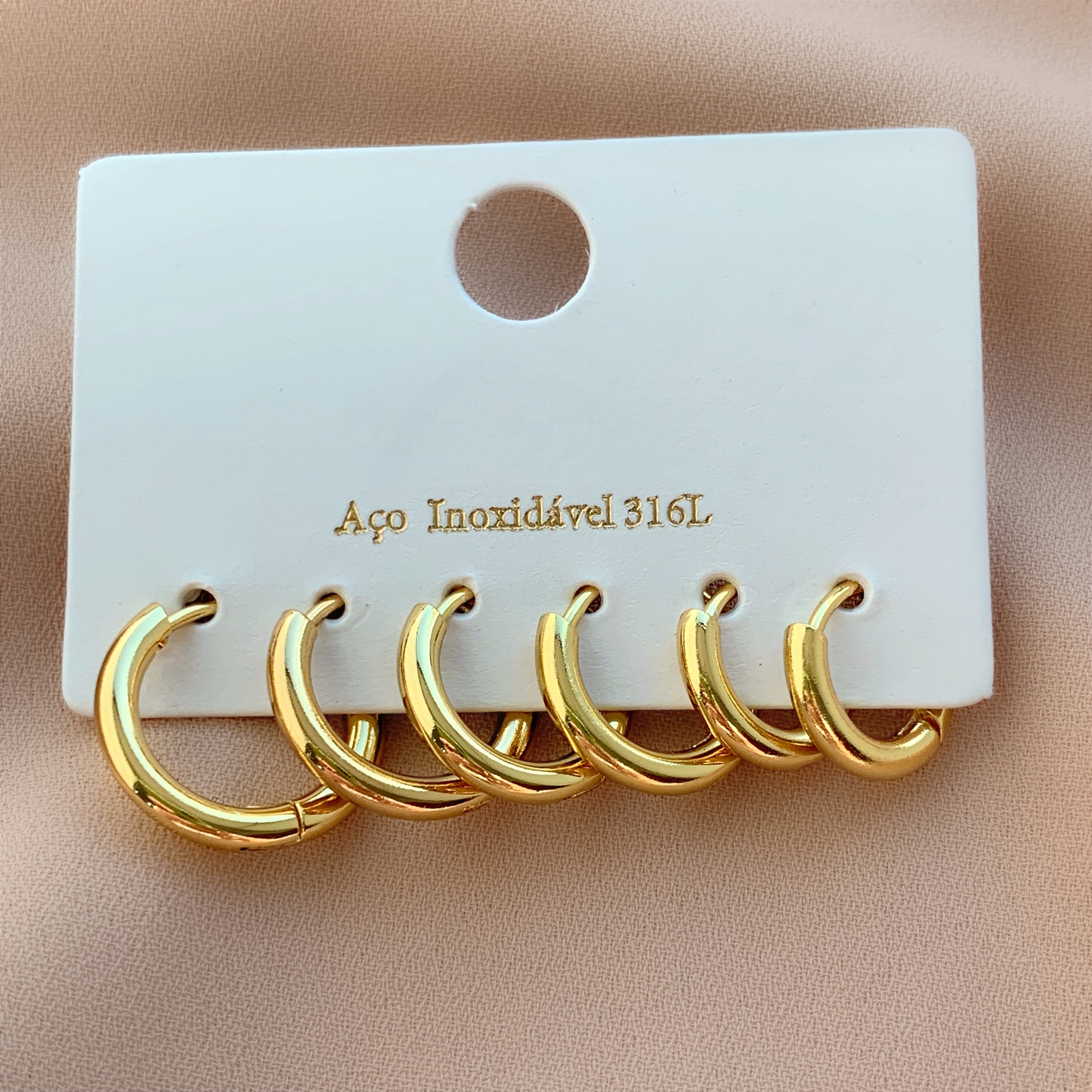 BRINCO KIT ARGOLINHAS FINAS P DOURADO AÇO 316L⭐️