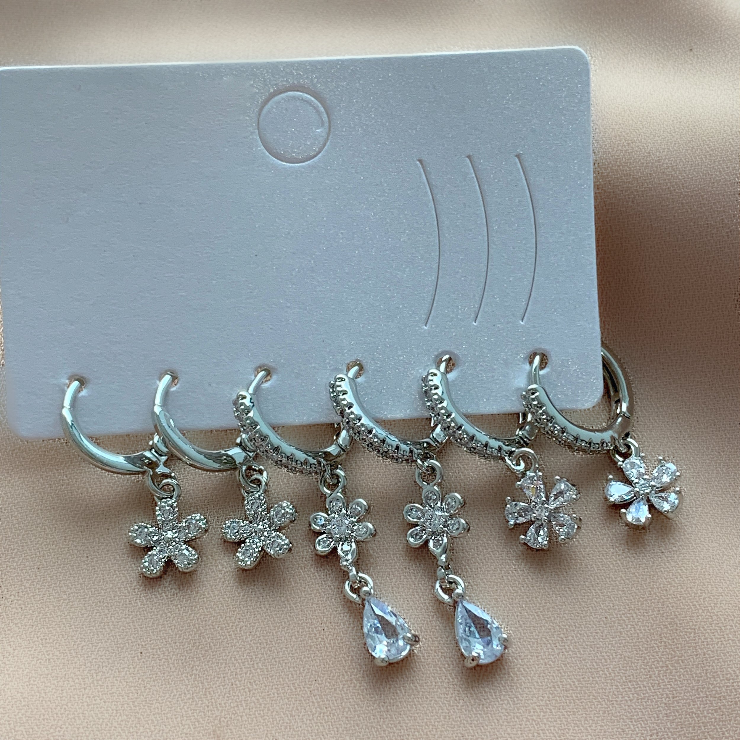 BRINCO KIT ARGOLINHAS FLOR ZIRCÔNIAS MELISSA PRATEADO BIJU
