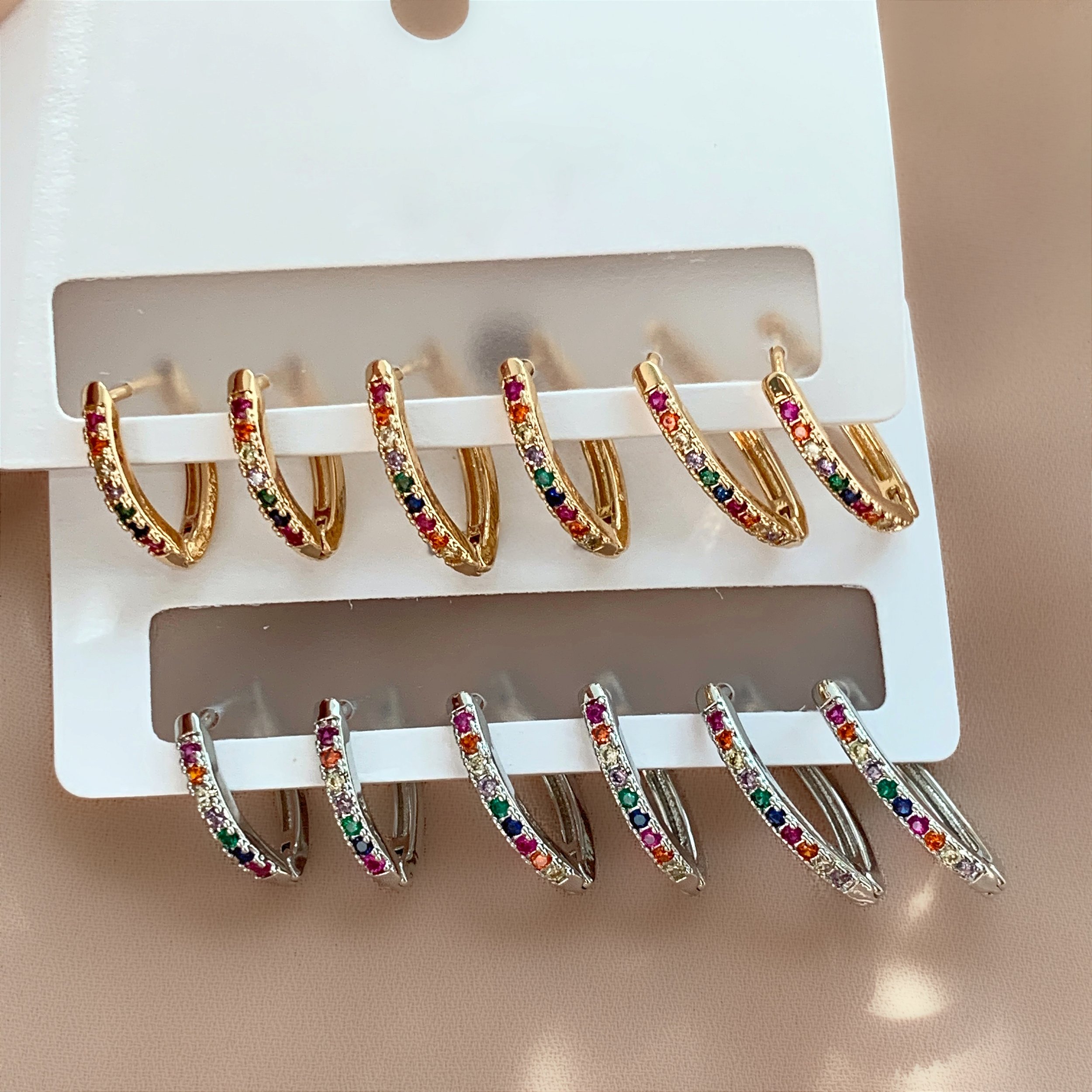 BRINCO KIT ARGOLINHAS FORMATO FOLHA ZIRCÔNIAS COLORIDAS BIJU