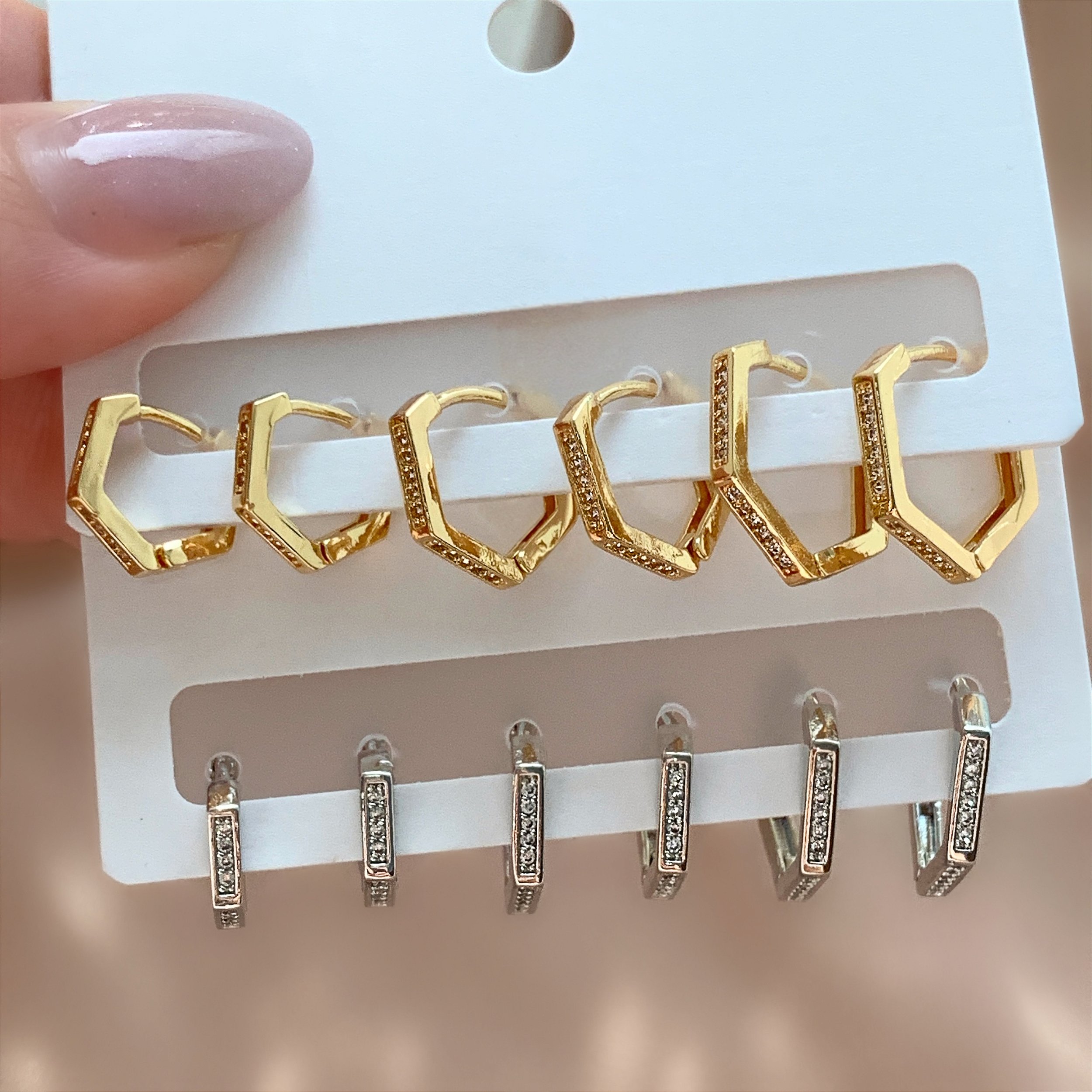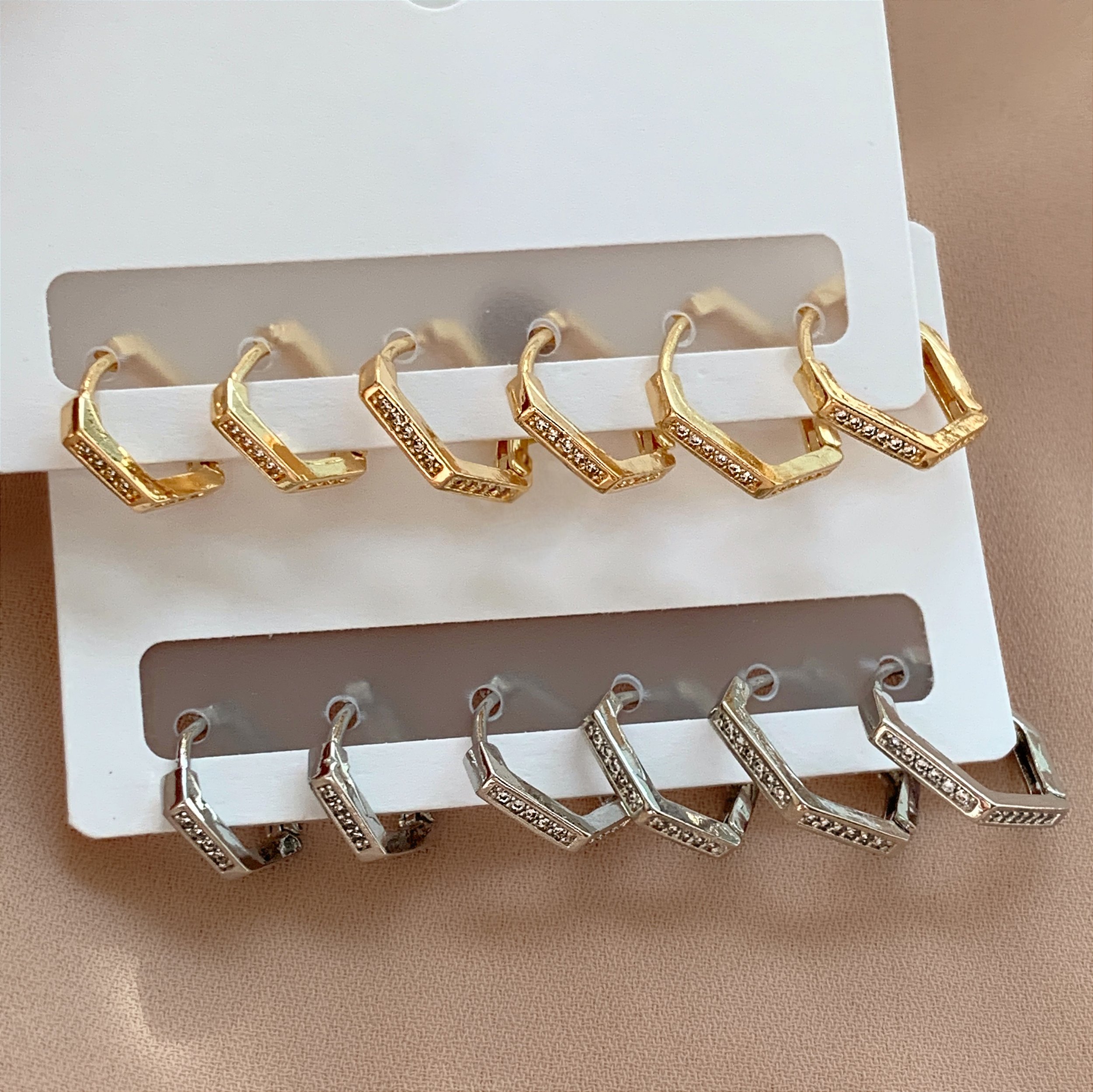 BRINCO KIT ARGOLINHAS HEXAGONAIS ZIRCÔNIAS BIJU