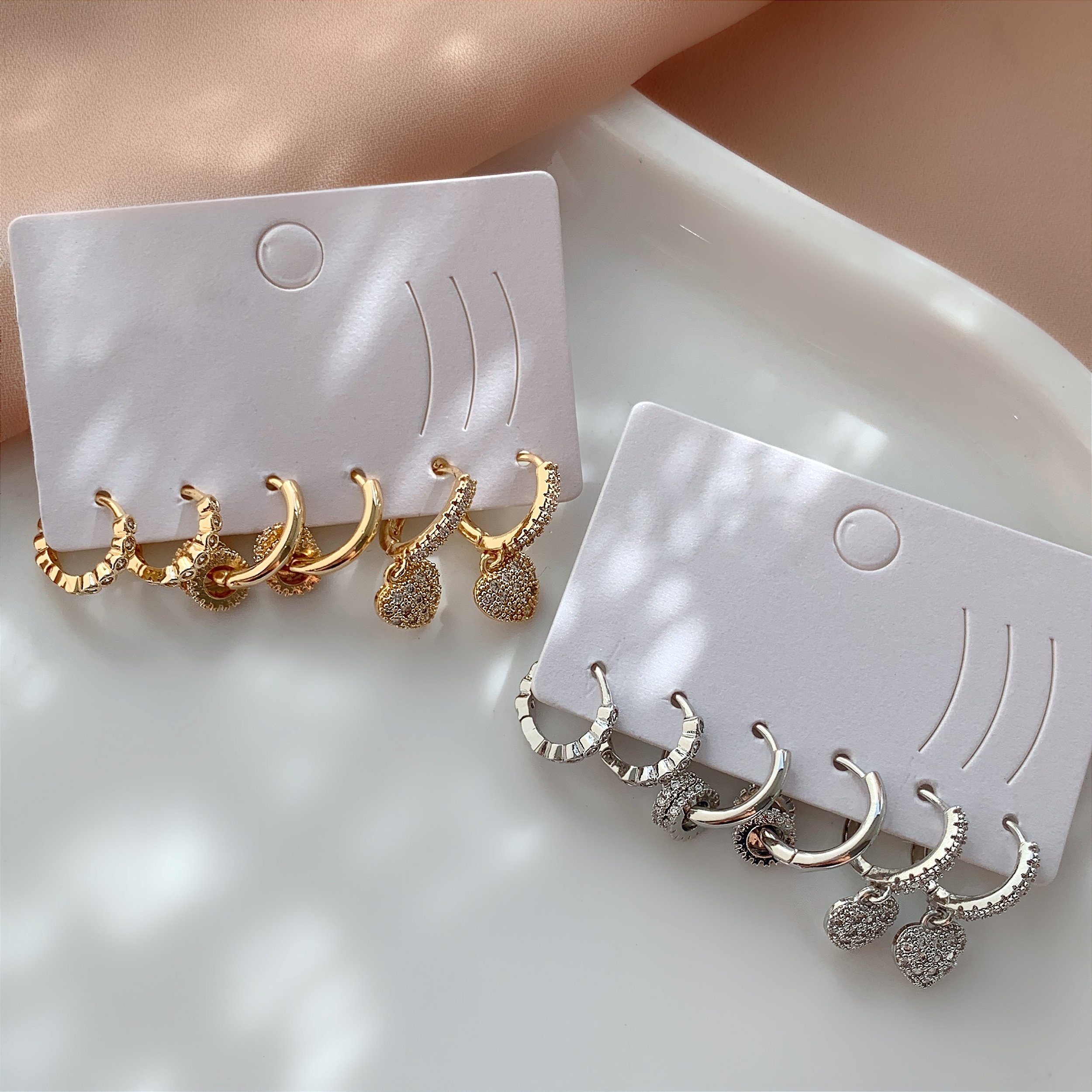 BRINCO KIT ARGOLINHAS LISAS E ZIRCÔNIAS CORAÇÃO CRAVEJADO BIJU