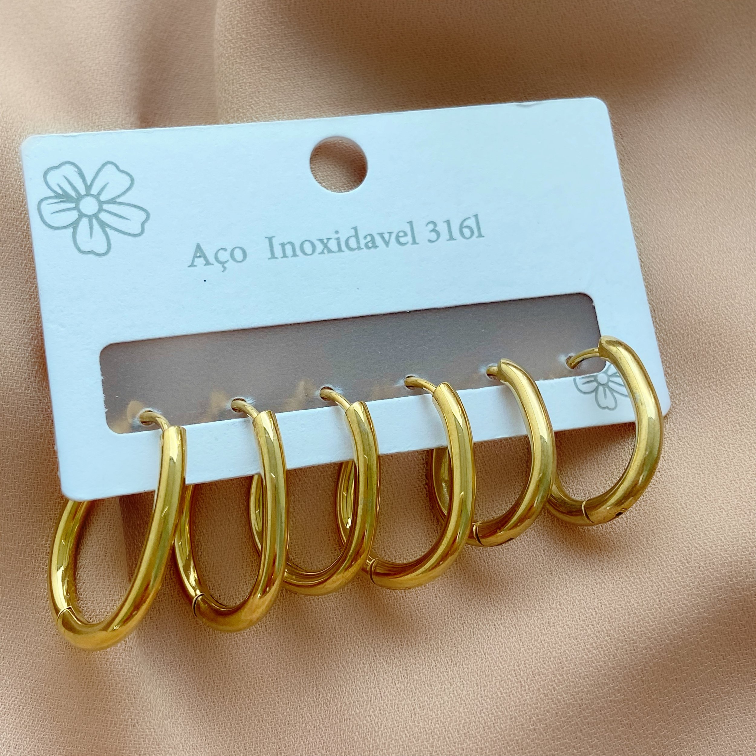 BRINCO KIT ARGOLINHAS OVAIS BOLEADAS AÇO 316L